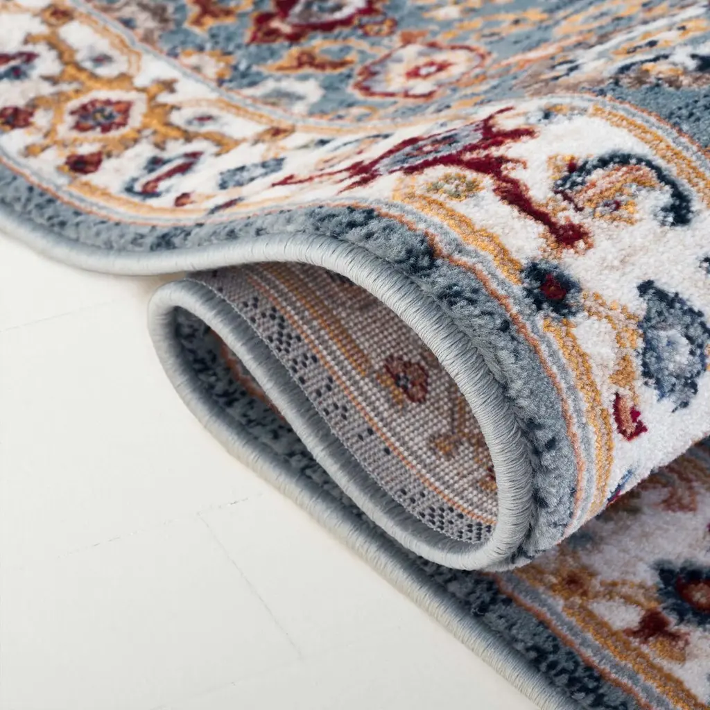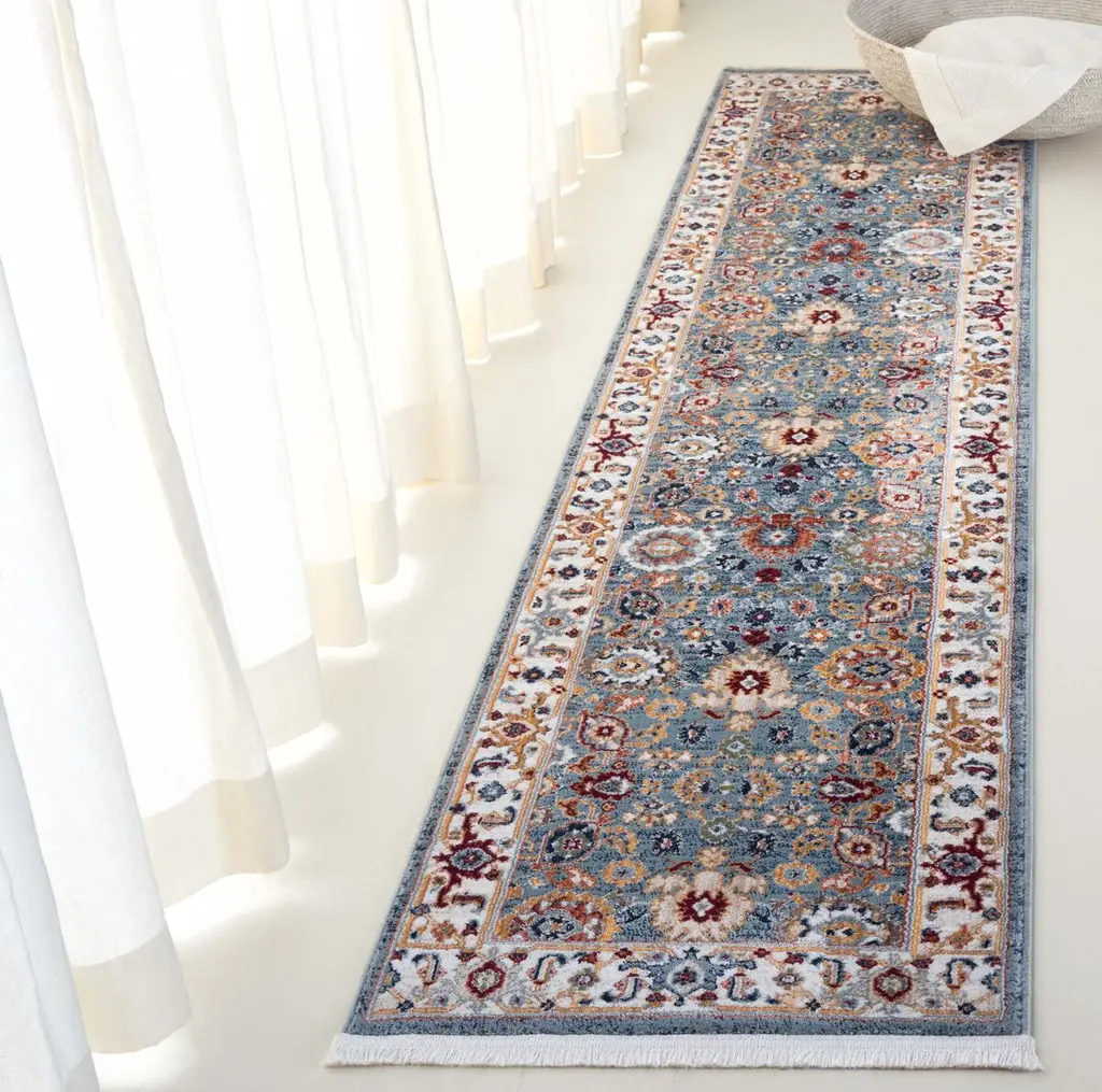 Elevate your hallway or entryway with our stunning Oriental runner rug. Measuring 2 by 8 feet and featuring a harmonious palette of ivory and blue, this exquisite piece brings a touch of tradition to any space. Crafted with precision using power loomed technique in Turkey, it combines 65% polypropylene, 30% cotton, and 5% polyester for a blend of durability and comfort. Its 3/8 inch height ensures a sleek profile while maintaining a soft underfoot feel. The intricate Oriental pattern adds a timeless elegance, making it a perfect choice for those seeking both style and functionality. Transform your home with the beauty of our traditional style rug today.