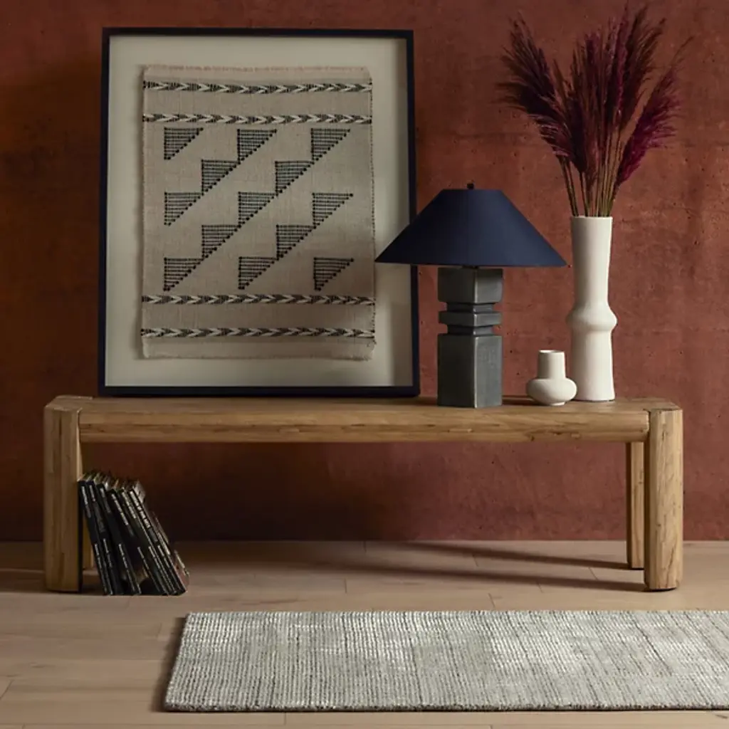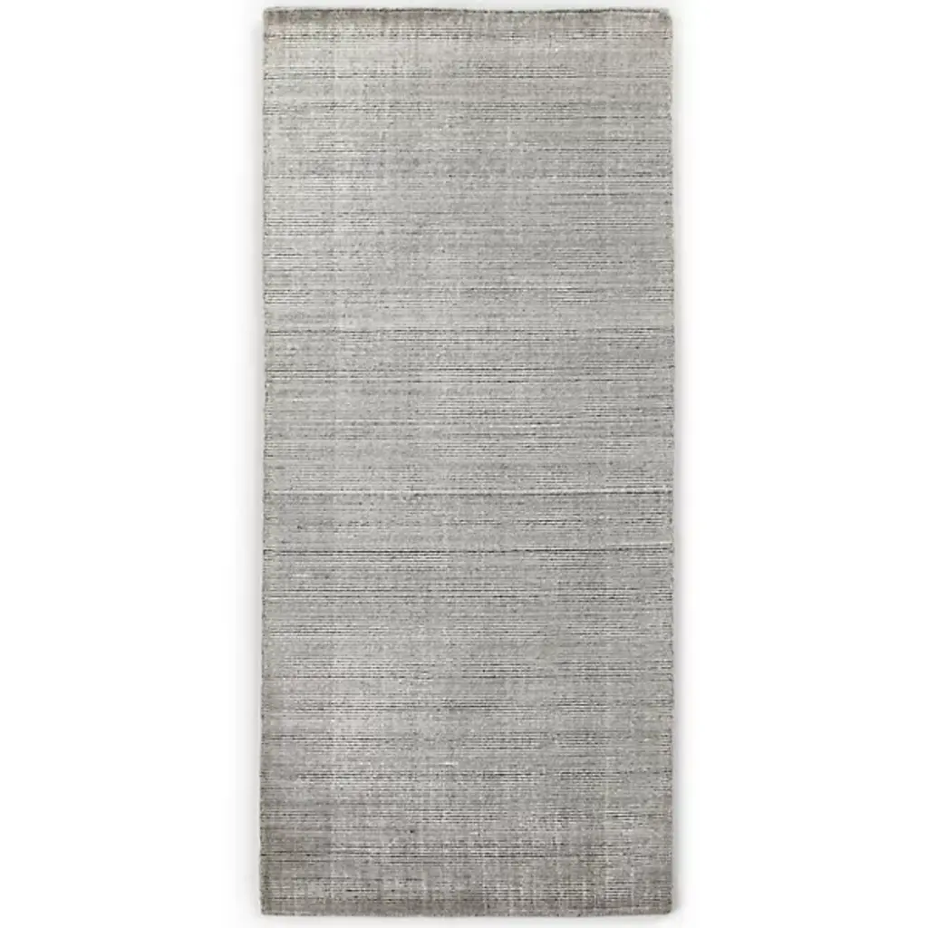 The Amaud Runner Rug is presented by Four Hands. It features a captivating combination of loop and short pile, alternating between soft wool and luxurious viscose. With its contrast of neutral hues tightly hand-woven, the interplay of these textures creates a dynamic and visually intriguing pattern, adding depth and dimension to your space.