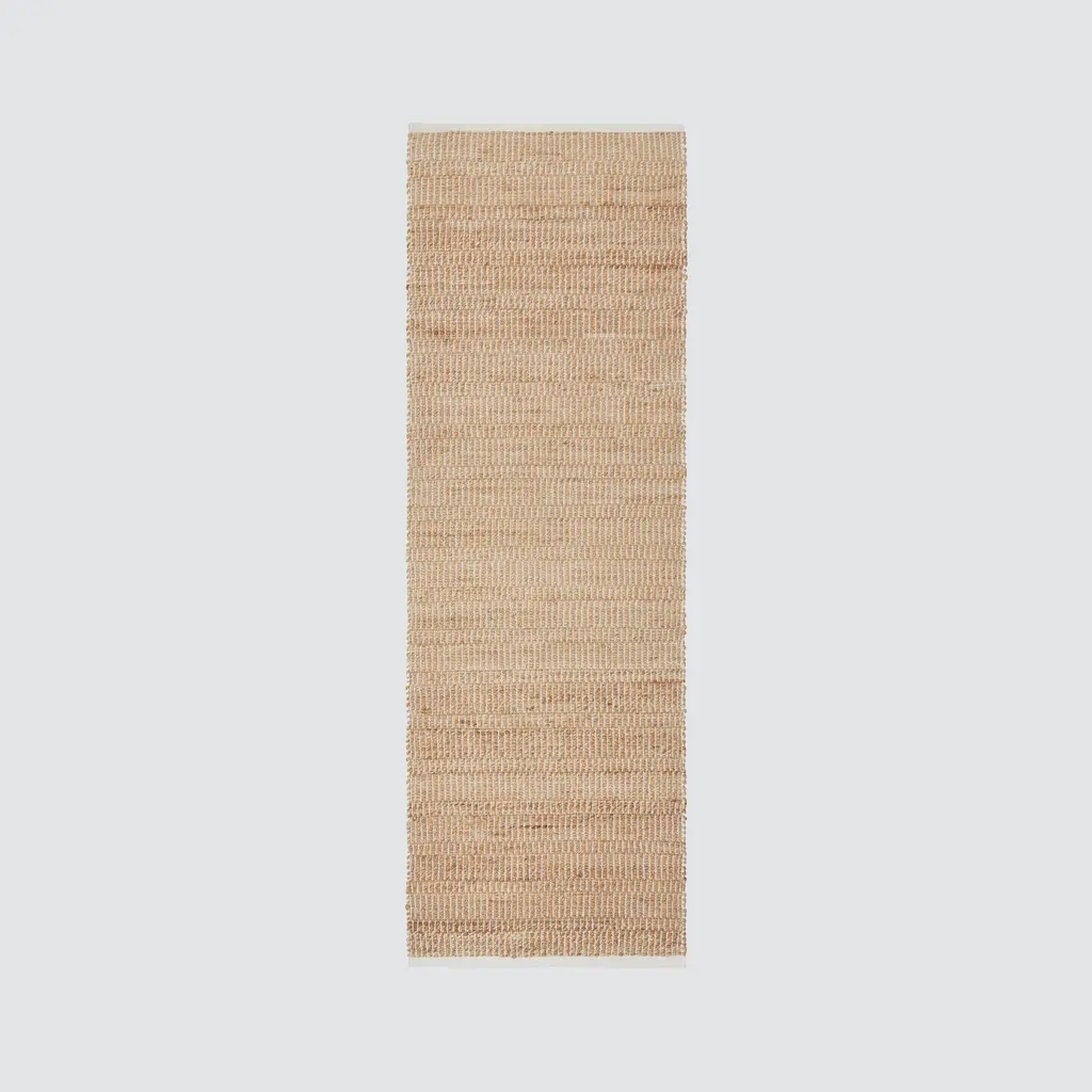 Earthy charm meets effortless style in this light, durable runner crafted from handwoven jute. The warm, natural charm of jute is on full display with this earthy runner. Handwoven with white thread to add a simple pattern of alternating stripes, each piece light, airy, and a durable addition to high-traffic areas like hallways or kitchens. Hand-knotted by a collective of 200 weavers in Panipat, one of India’s historic hubs for rug making, each piece takes months to complete. Made with natural dyes, every rug features subtle variations in color that make each piece one of a kind. Every rug is Oeko-Tex® certified and made sustainably in a fair trade environment. We recommend a rug pad to prevent wrinkles and slippage. Also available as an area rug. Not sure what size you need? Visit our Rug Size and Style Guide for more information.