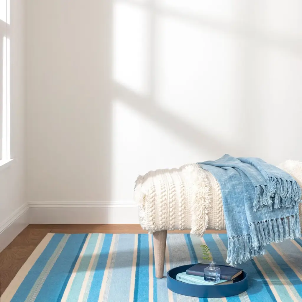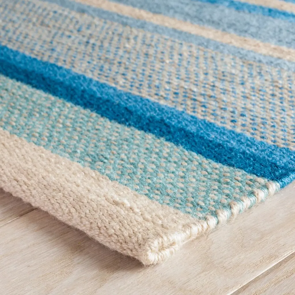 Add renewed zest to any high-traffic area with this lively blue-hued striped rug. Like the rest of our indoor/outdoor styles, Seed Stitch is washable, durable, and eco-friendly yet has the soft hand feel of natural fiber. Find bold comfort underfoot everywhere you step.