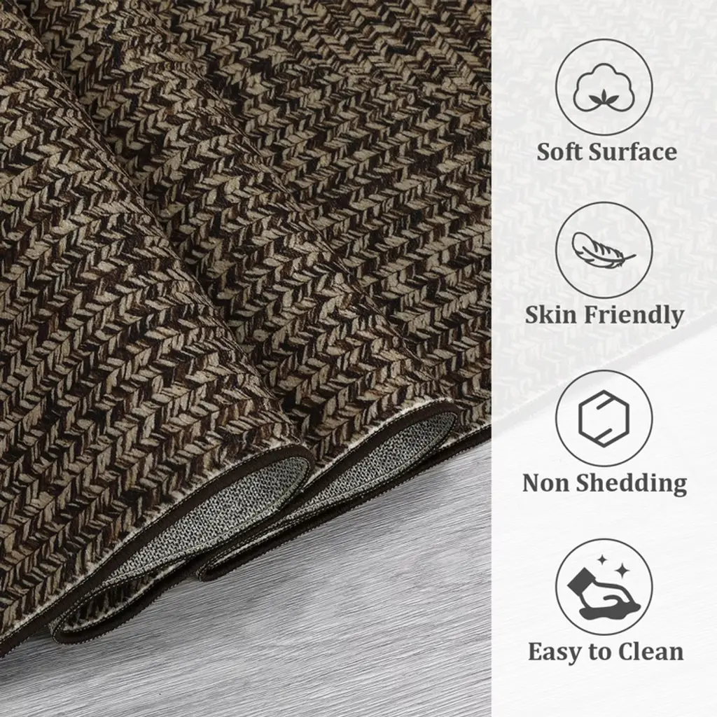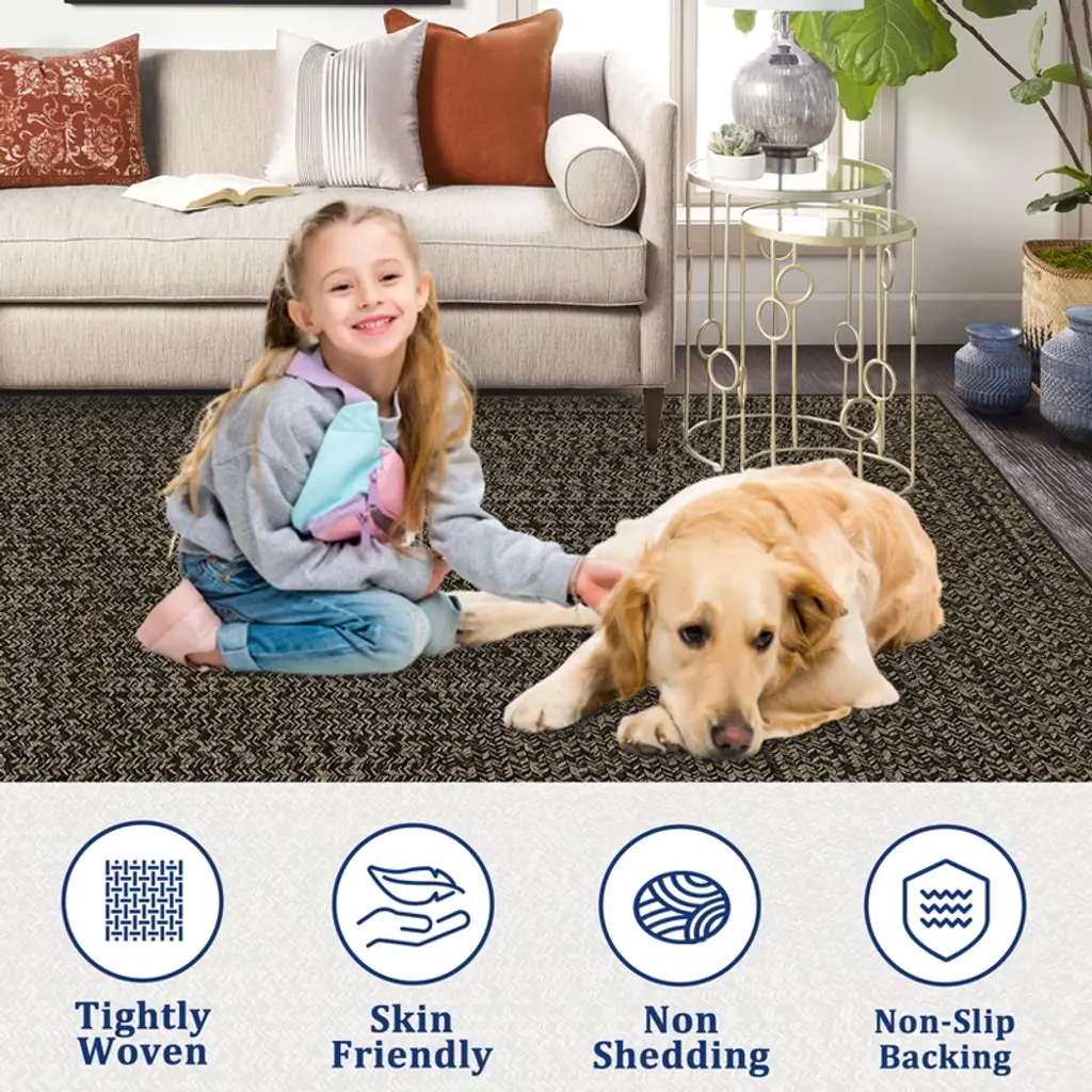 Discover the charm of this exquisite woven pattern rug that effortlessly transforms your space! With its design and rich textures, this carpet adds a touch of sophistication to any room. Perfect for living rooms, bedrooms, or dining areas, it offers both style and comfort, making it a delightful addition to your home decor.More Features:--Non-slip & Non-shedding--Machine washable & Easy to clean--Foldable & Lightweight--Low-Pile & Soft--Stain resistant--Faux Wool feeling--Vintage & Distressed & Modern & Country & Farmhouse & Braided PatternSpecification:Size(Ft): 2x6 / 5x7 / 8x10 / 9x12 / 10x13Color: Beige, Brown, Black, GreyMaterial: polyester fibre, the rug backing was coated with TPRApplication: Living room/Bedroom/Dining room/Nursery room/Kids room /Play room/Kitchen /Farmhouse/Office/Floor/Entryway/HallwayCare instructions:The braided pattern rug can be machine washed. For regular vacuuming along the direction of the fibers for easy cleaning and to prevent tangling.Notes:1. When Area rug arrives, there may be temporary creases, you can roll the washable rug in the opposite direction and lay it flat on the floor while applying pressure to the carpet, the creases will disappear completely in a few days.2. The product color may appear significantly different depending on the lighting conditions.3. Do not tumble dry.
