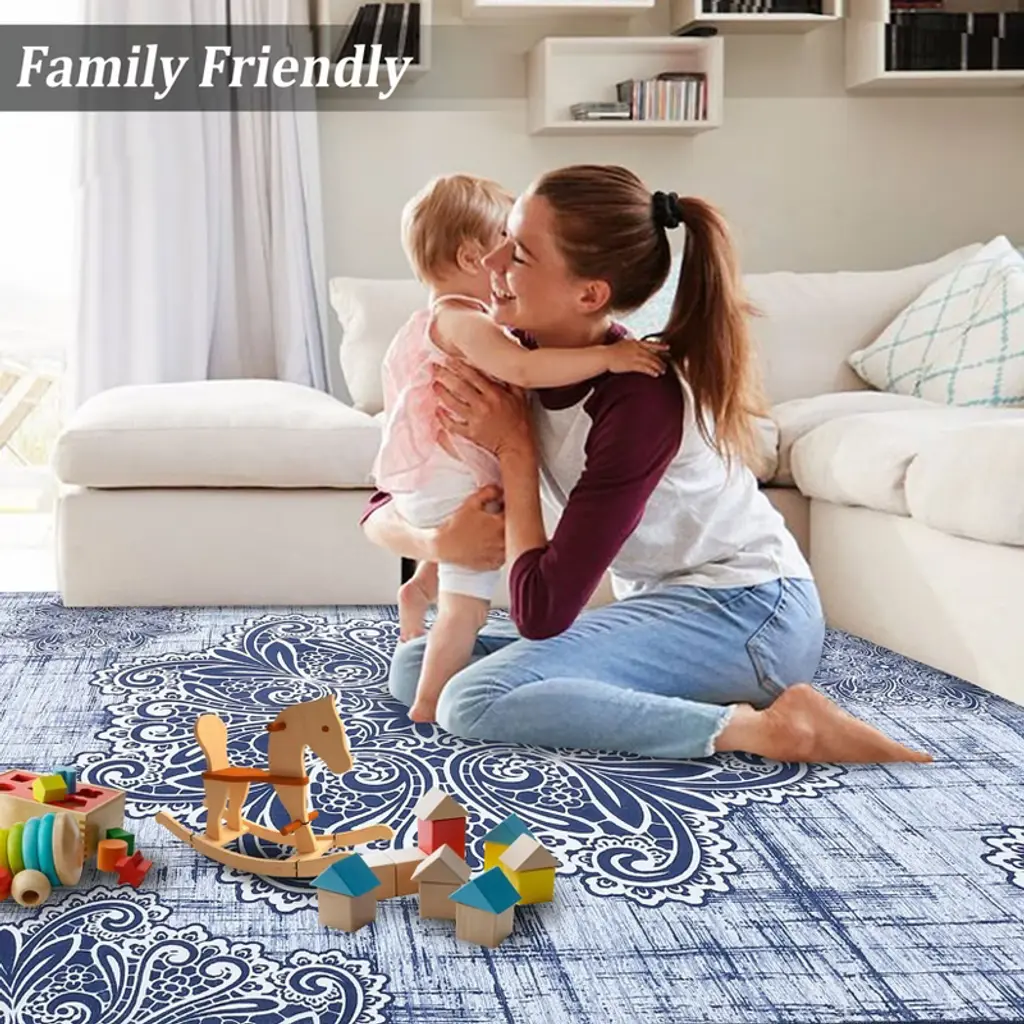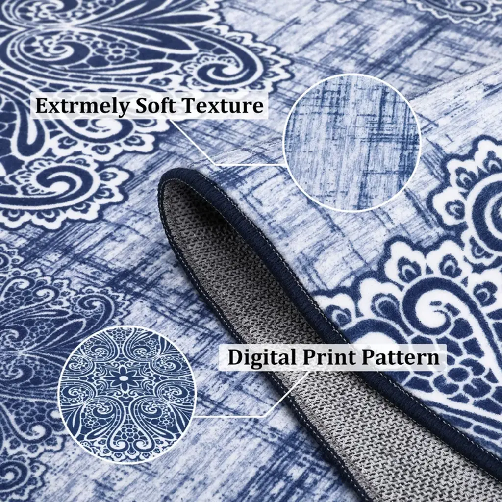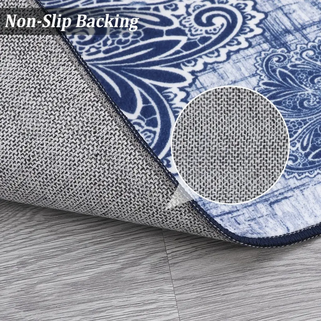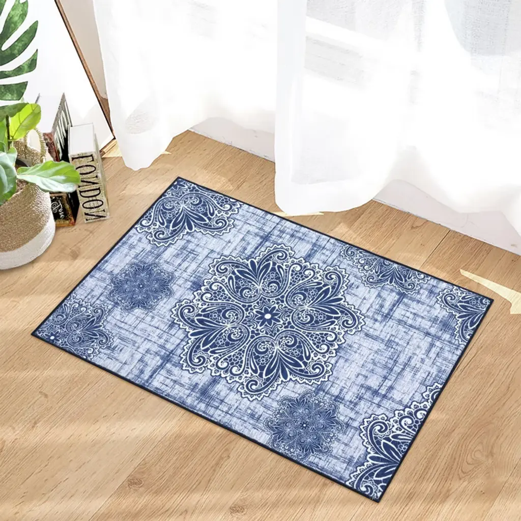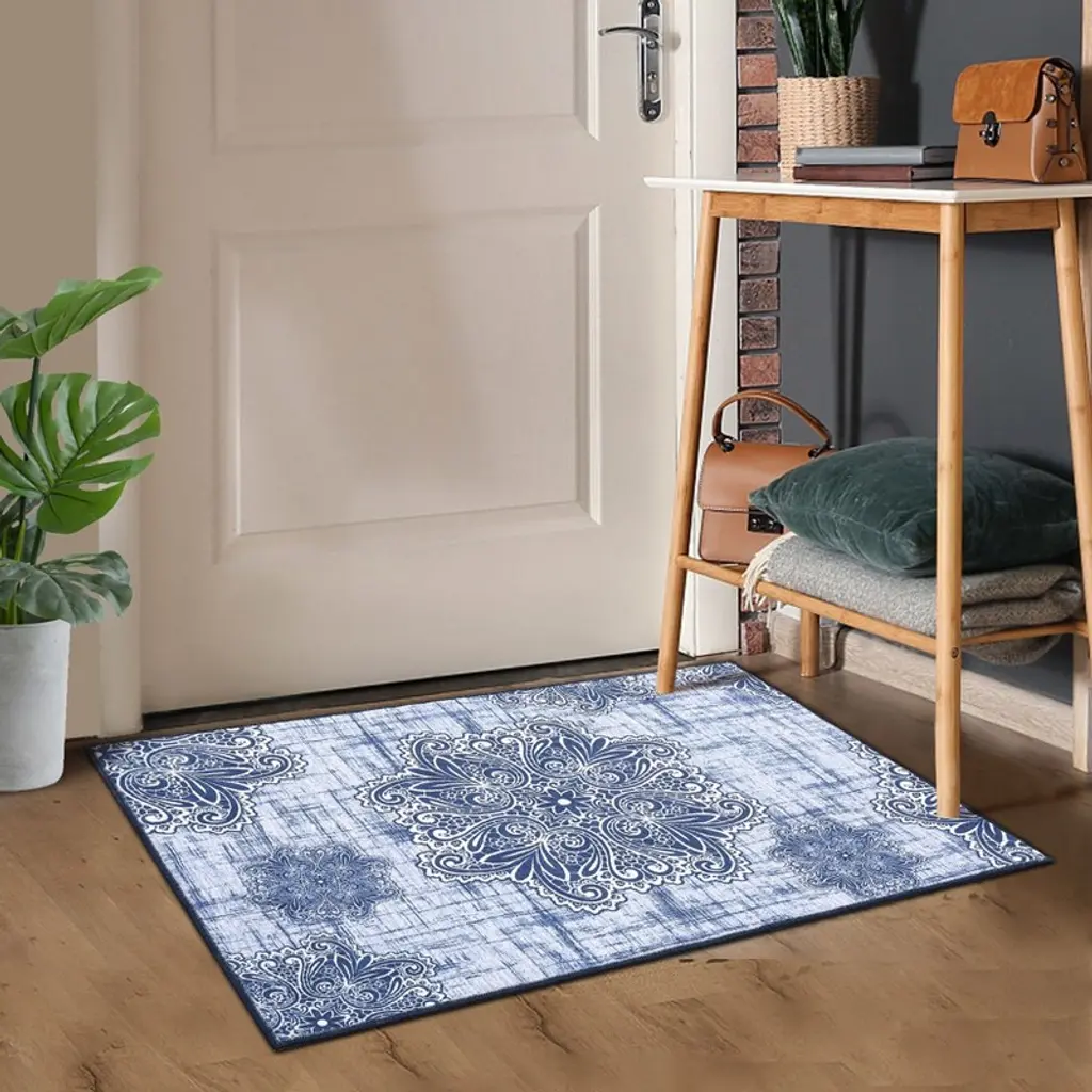 Area Rug Vintage Medallion Washable Rugs Non Slip Non Shedding Distressed Printed Low Pile Foldable Carpet For Bedroom Living Room,blue/2'x6'