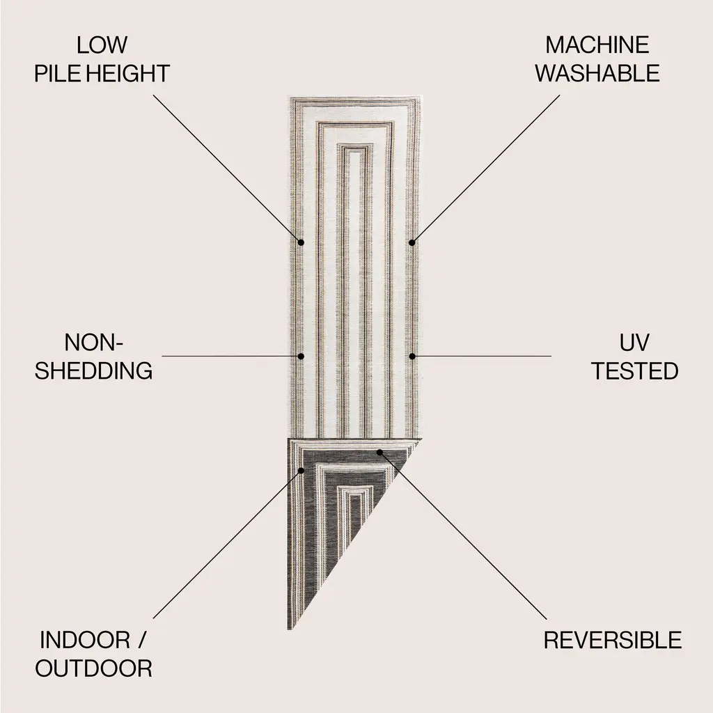 Argo Classic Nautical Mitre Stripe Reversible Machine-Washable Indoor/outdoor Runner Rug - Black,cream / 3 X 5