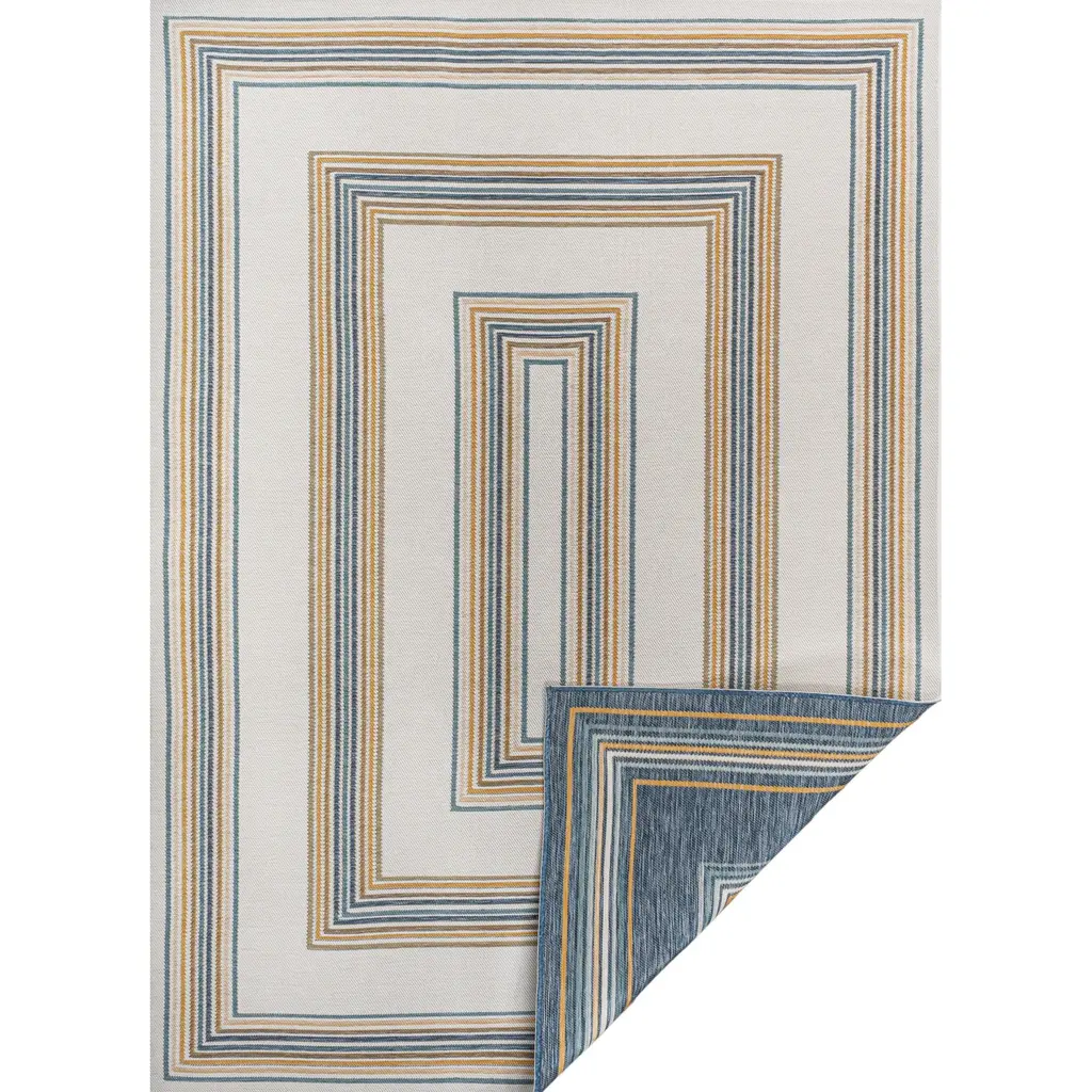 Inspired by nautical stripes, this classic rug features a ticking-style stripe with mitred corners. Mingled threads give this easy-care, reversible rug a coastal vibe. Durable enough for outdoors on a porch, or in the living room, entry, bedroom or dining room.