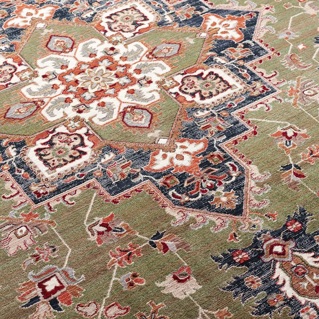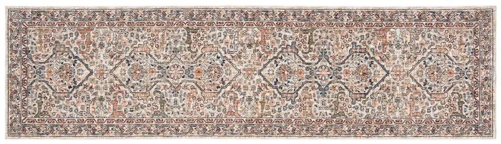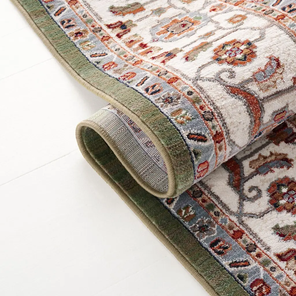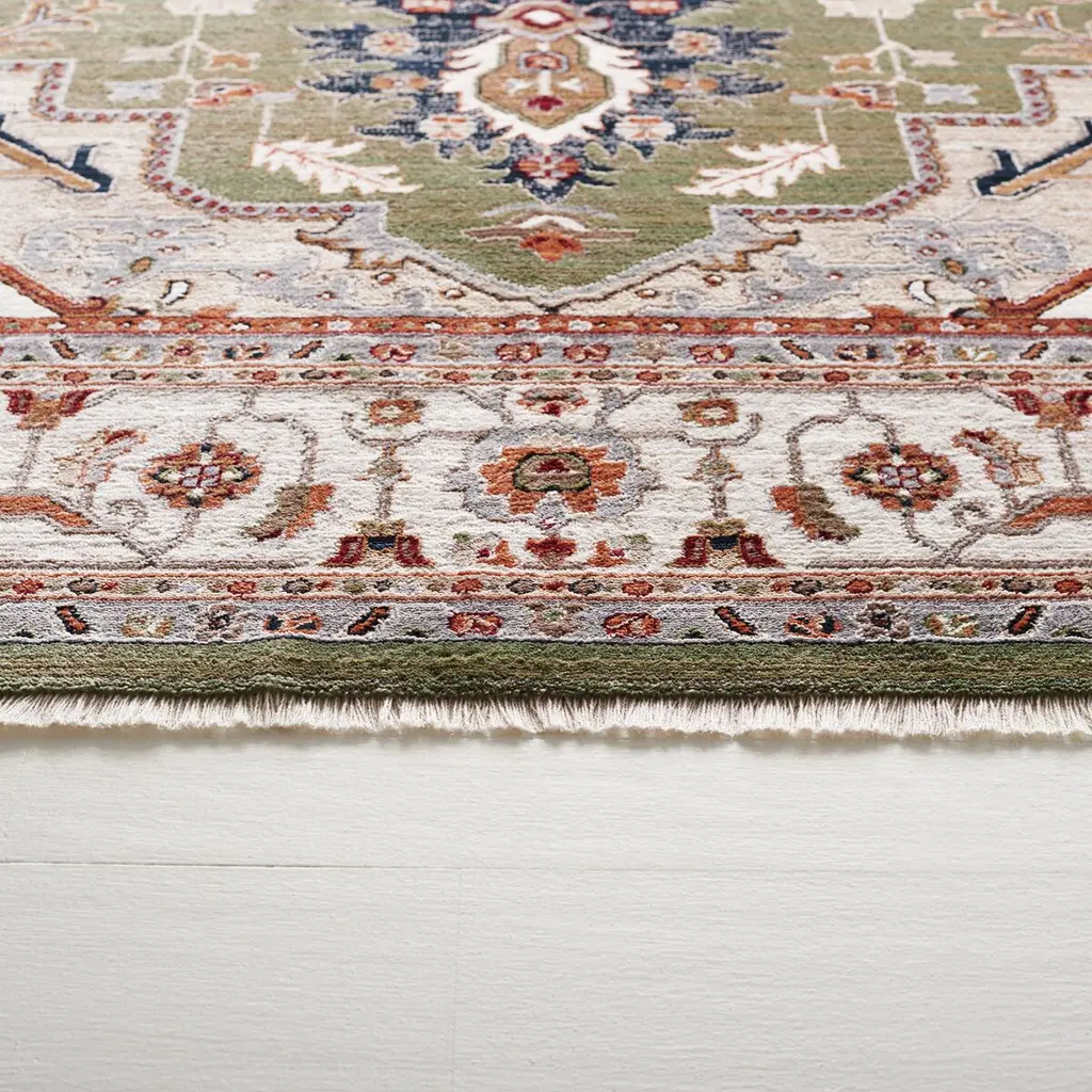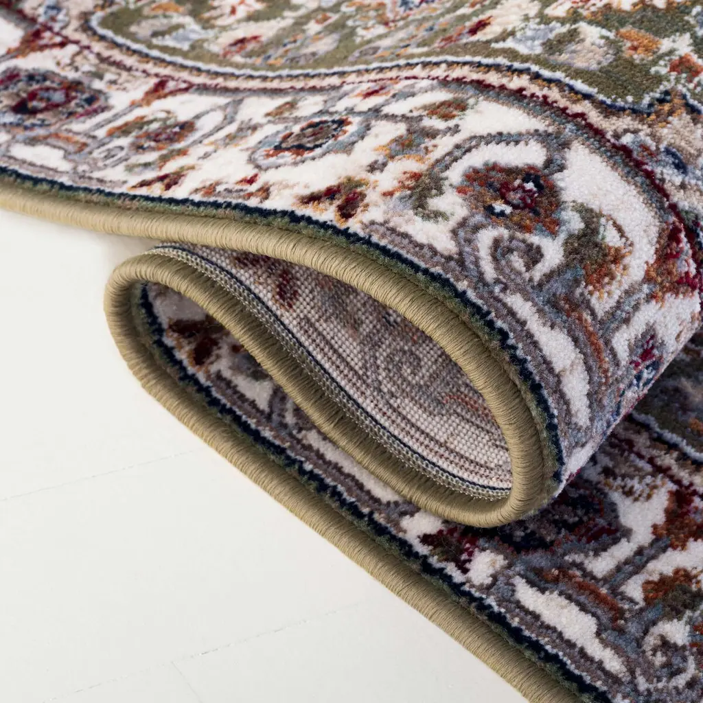 Elevate your space with the timeless elegance of our 2' X 8' Transitional Runner Rug. This exquisite piece is a testament to classic design and modern construction techniques, embodying a seamless blend of the old and new. The rug showcases a harmonious palette of GREEN, BEIGE, and RED hues, lending a warm and inviting ambiance to any hallway or long, narrow space. Crafted with meticulous attention to detail using a power-loomed technique, this runner offers a remarkably intricate pattern that draws the eye. Made in Turkey, the rug exudes the quality and craftsmanship synonymous with the region's centuries-old rug-making heritage. The rug is constructed with a high-grade blend of 65% Polypropylene, 30% Cotton, and 5% Polyester, ensuring both durability and softness underfoot. With a practical pile height of 3/8", it strikes the perfect balance between comfort and ease of maintenance. Whether you're outfitting a traditional space or adding a touch of sophistication to a more contemporary setting, this runner rug's transitional style is sure to harmonize with your decor. Witness the exquisite pattern that captures the essence of transitional design, featuring a central medallion, ornamental border, and delicate floral motifs, creating a rich visual tapestry that will become the focal point of your space. Indulge in the luxury and history this runner brings to your home?the perfect choice for those who appreciate the finer details and desire a sumptuous walking