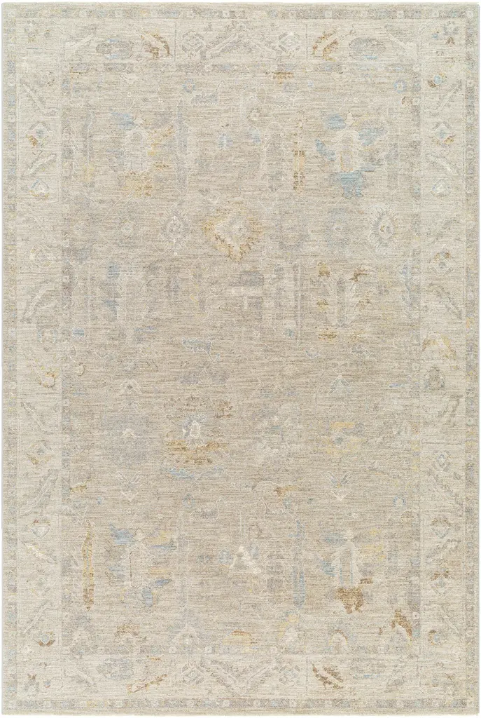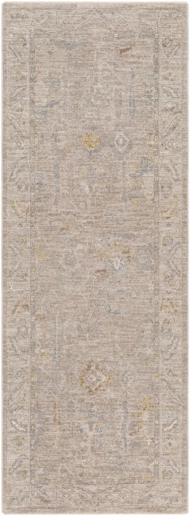 Collection: Ashra Colors: Light Brown, Medium Gray, Medium Brown, Gray Construction: Machine Woven Material: 100% Polyester Pile: Medium Pile Pile Height: 0.35" Styles: Traditional Made In: Turkey Thickness: 0.43" Fringe Length: 0.43" Price Range: $$$$$ (Affordable)