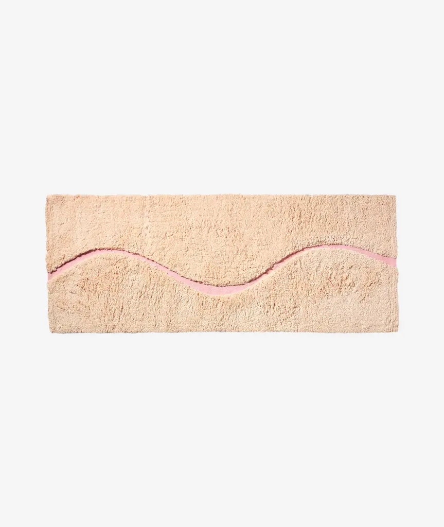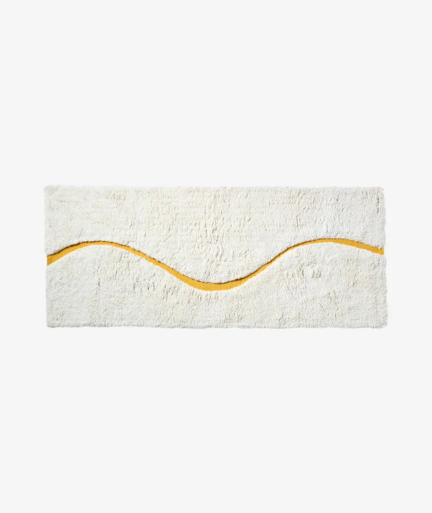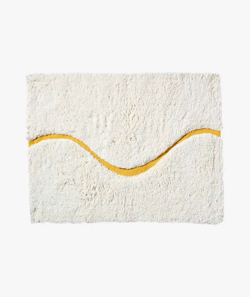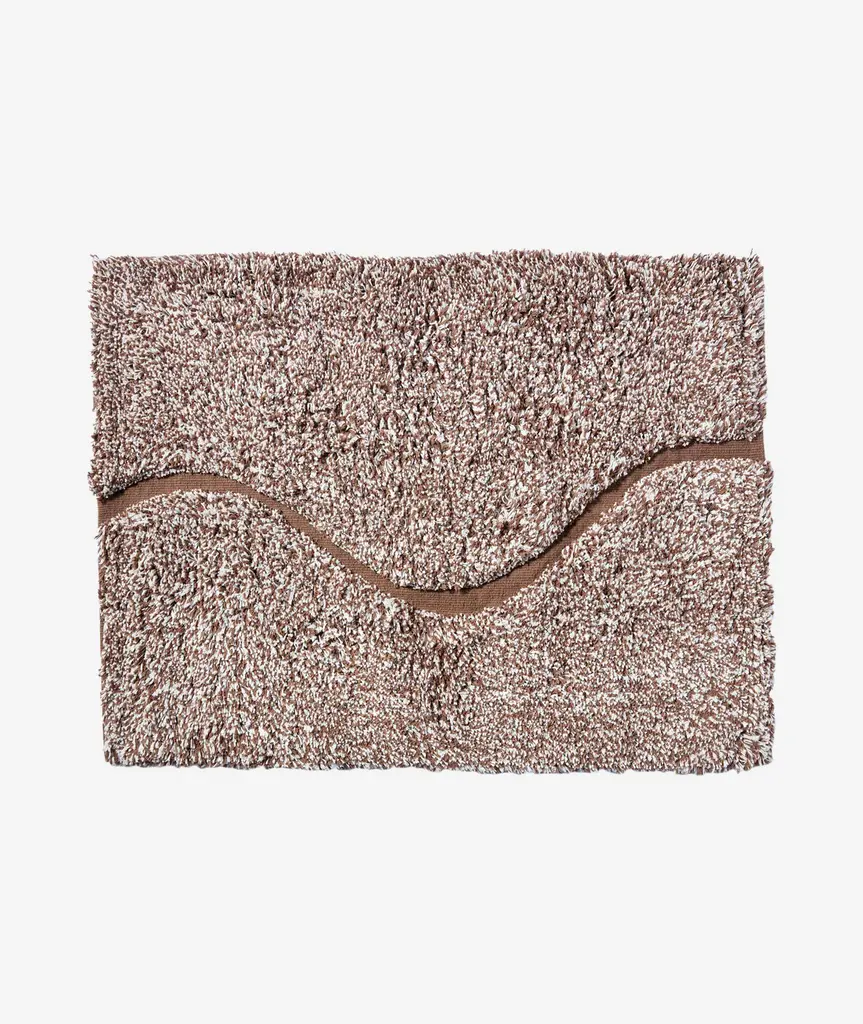 Introducing The Atlas, a quiet, sophisticated bath rug designed to be styled in any bathroom. The Atlas combines our famous kilim flat weave and a lush, high-pile for a layered, textural look and feel. We created a carved-out, curvy “path” revealing hidden color and a tightly-woven Kilim texture. Our bath rugs are made in India at a family-run, artisan factory and are hand-woven by master weavers. We use 100% certified BCI cotton (sustainably sourced).