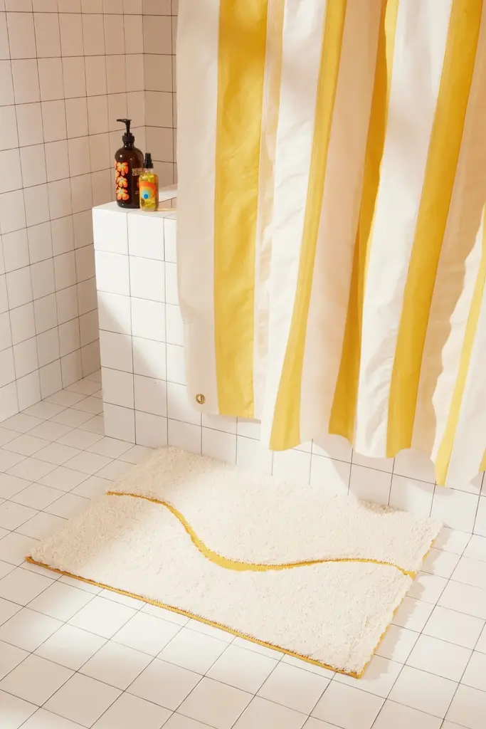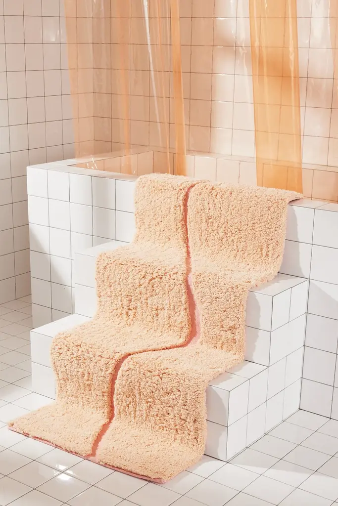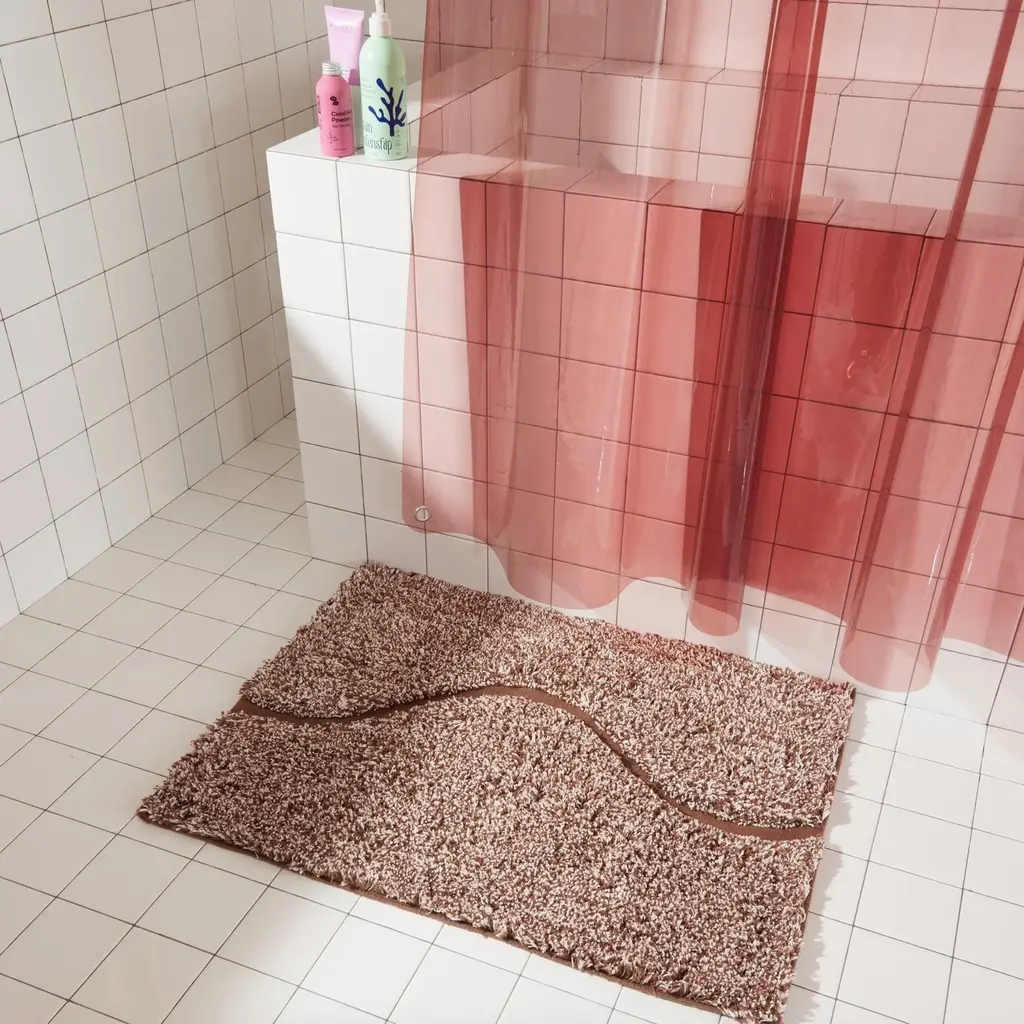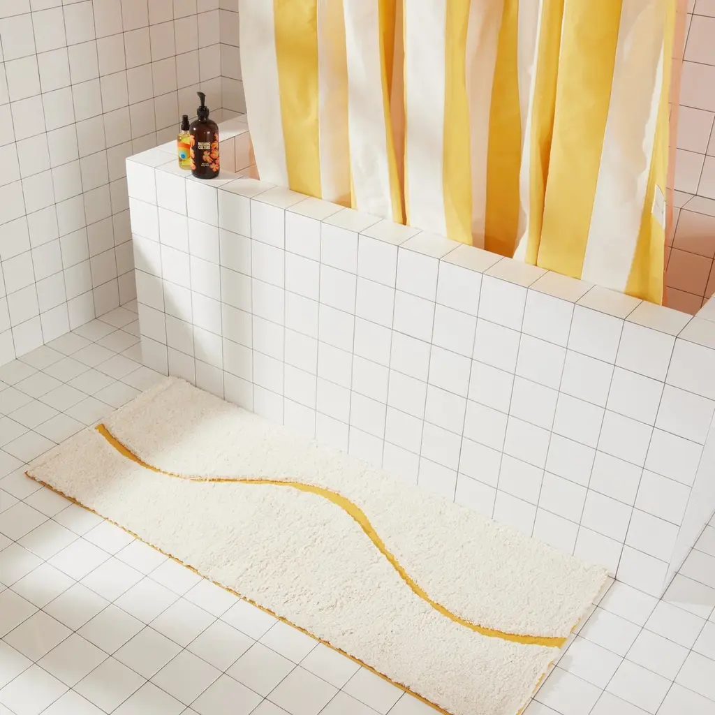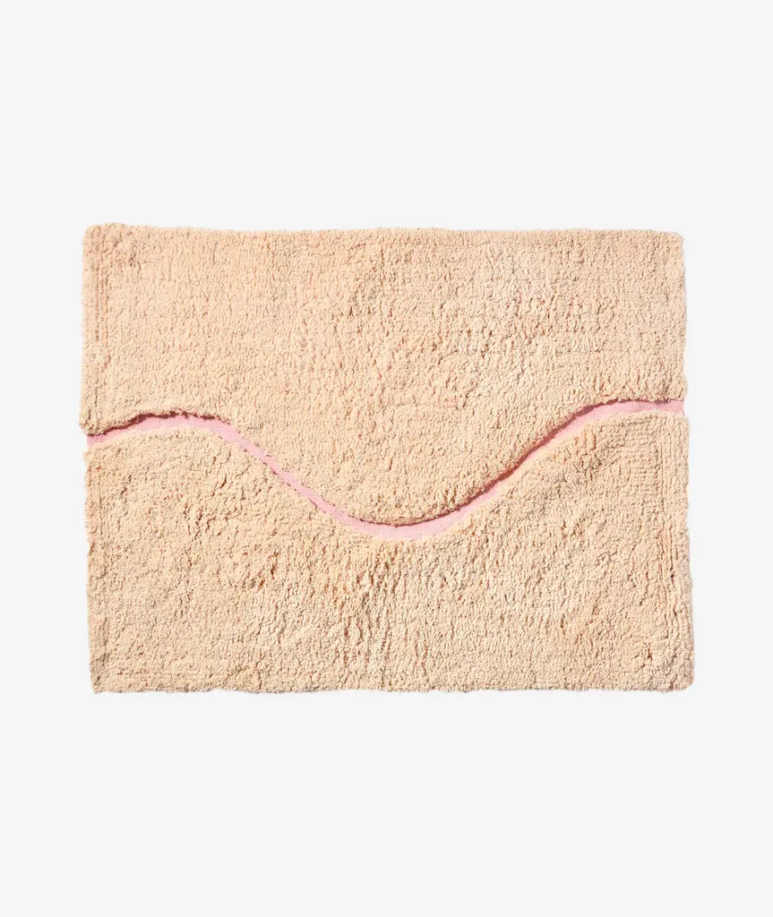 Introducing The Atlas, a quiet, sophisticated bath rug designed to be styled in any bathroom. The Atlas combines our famous kilim flat weave and a lush, high-pile for a layered, textural look and feel. We created a carved-out, curvy “path” revealing hidden color and a tightly-woven Kilim texture. Our bath rugs are made in India at a family-run, artisan factory and are hand-woven by master weavers. We use 100% certified BCI cotton (sustainably sourced).