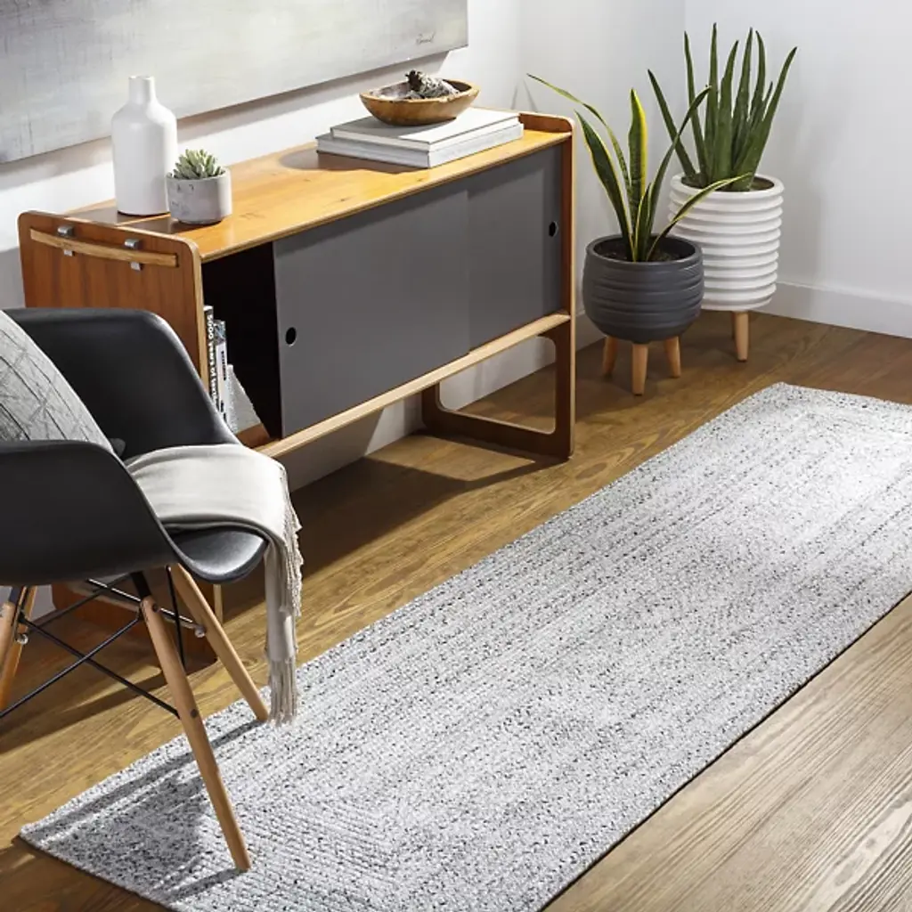 The Azalea AZA 2320-2323 Runner from Surya presents a tasteful contemporary character to inside spaces. A long rectangular construction of handwoven PET yarn, it’s made in India and is built up as a tightly-stitched series of concentric rectangular shapes, pairing style with sustainability and adding a welcome touch of softness to its surroundings.