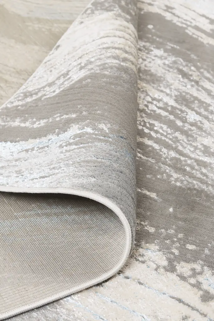 Collection: Azure Colors: Gray, Ivory, Blue Construction: Machine Made Material: Face: Polyester, Polypropylene / Warp: Cotton Pile: Low Pile Pile Height: 0.39" Styles: Contemporary,Industrial,Casual Backing: Cotton Made In: Turkey Thickness: 0.39" Price Range: $$$$$ (Affordable)
