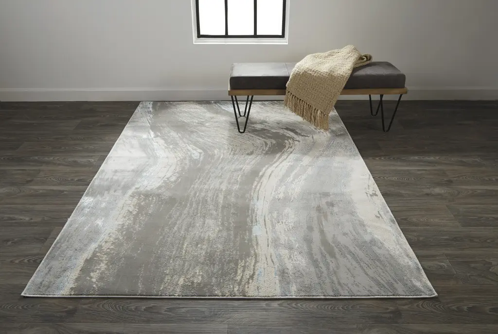Azure Modern Abstract - Gray/ivory/blue Area Rug - 2'10" X 7'10" Runner