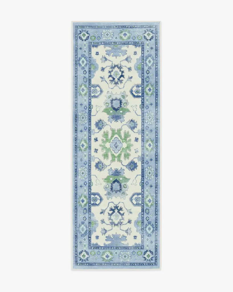 Banshee 96 X 30 Inch Blue And Neutral Runner, Wool And Viscose