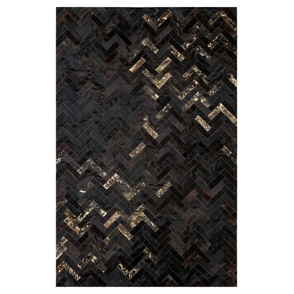 Your lounge room just got a helluva lot more glam with the entrance of this 70s glam rock-inspired classic, in jet black herringbone combined with lots of gold! Let's face it, The 70s had it all and this stunning rug will make your space effortlessly ah-mazing.Art Hide cowhide rugs are stitched together using commercial grade nylon thread and feature a branded ribbon edge finish. They are built to last a lifetime.This rug can easily be customized to any colour, size or shape.Art Hide rugs are usually made to order. Please allow approximately 4 weeks for delivery.