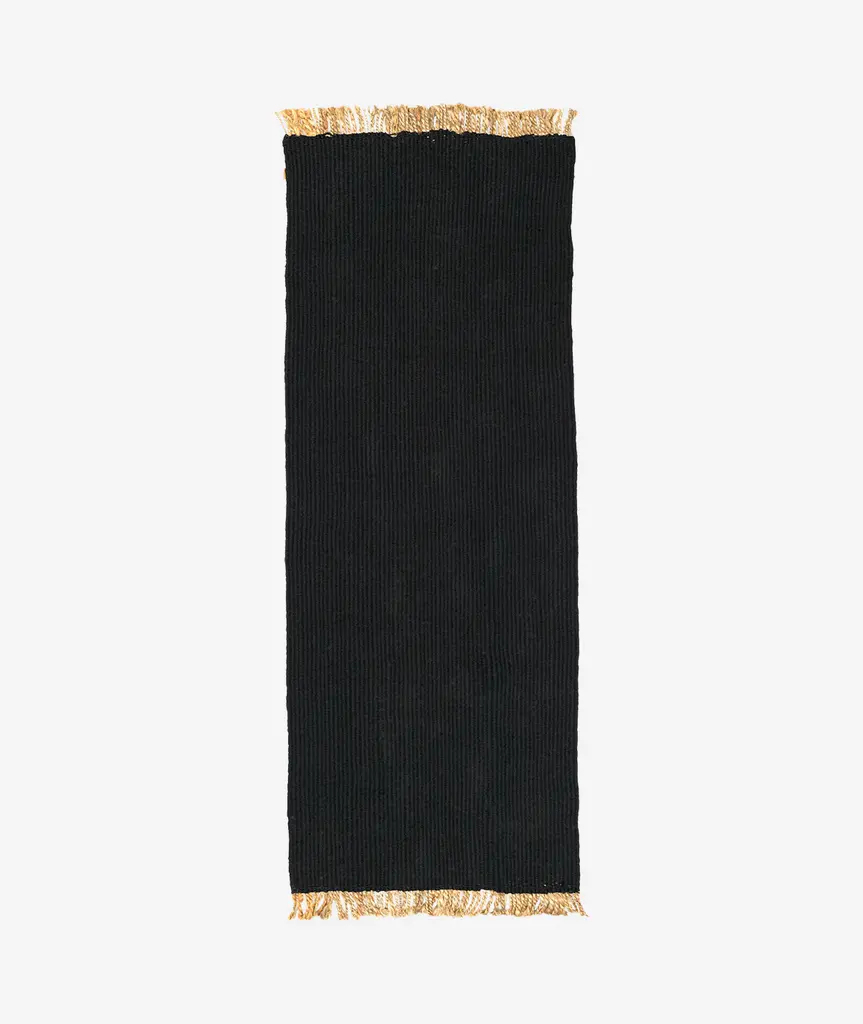 Handwoven in a blend of natural jute and PET yarn made from recycled post-consumer plastic, the Block Runner brings warmth and texture to your interior space. Its elongated shape makes it ideal for the hallway or a narrow area, while the raw fringe adds a touch of rustic charm.