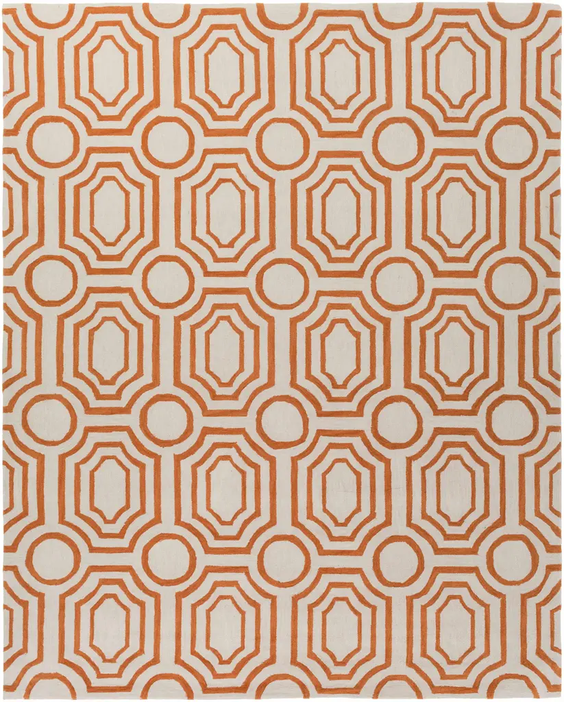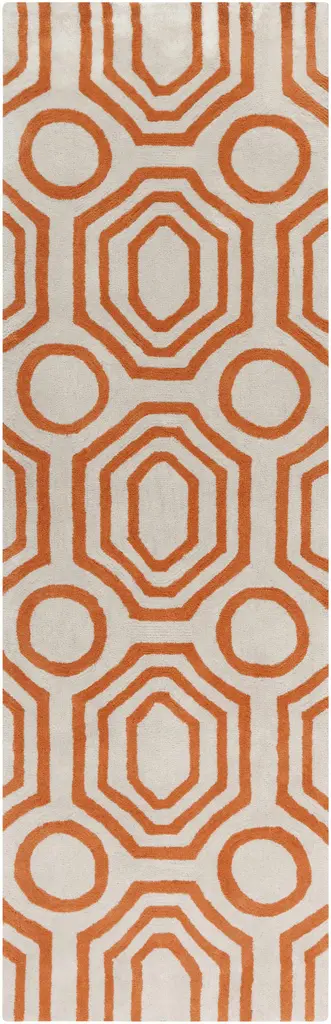 Collection: Blodgett Colors: Cream, Orange Construction: Hand Tufted Material: 100% Polyester Pile: Medium Pile Pile Height: 0.31" Styles: Contemporary Backing: Canvas Made In: China Thickness: 0.5" Price Range: $$$$$ (Most Affordable)