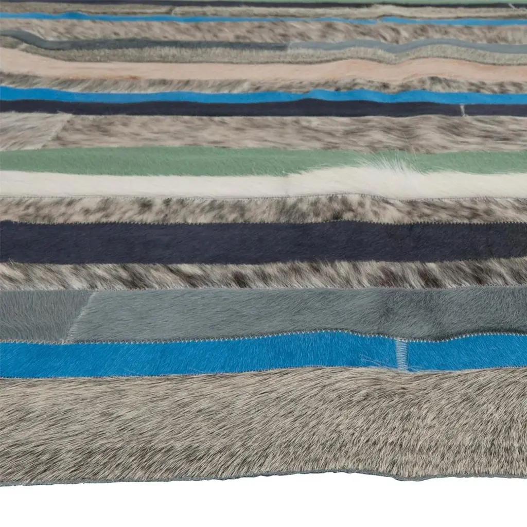 Relax with the sublime – yet relaxed and sophisticated – coastal vibe of the new blue colourway of Art Hide’s best selling Nueva Raya style. Perfect for bedrooms, chill out spaces and where ever you want to relax!Art Hide cowhide rugs are stitched together using commercial grade nylon thread and feature a branded ribbon edge finish. They are built to last a lifetime.This rug can easily be customized to any colour, size or shape. Please Contact Us if you wish to change the specification of your rug.Art Hide rugs are usually made to order. Please allow approximately 4 weeks for delivery.