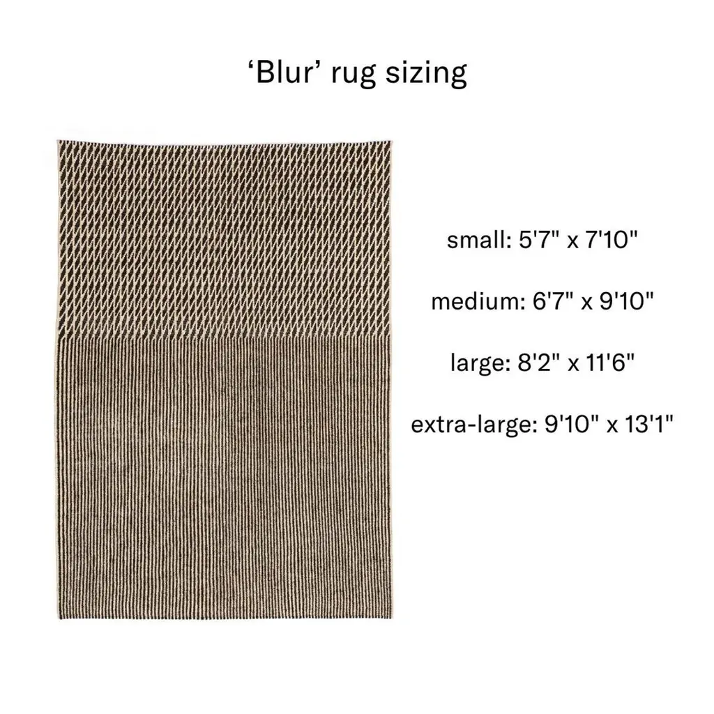 'Blur' Wool Kilim Runner Rug by Ronan and Erwan Bouroullec for NanimarquinaFabricated from Afghan wool, 'Blur' is a hand-loomed kilim rug. The sequence of geometric shapes and repetition are definitive hallmarks of the Bouroullec brothers. The rug's blurred effect has been achieved by inverting the direction in which the kilims are traditionally woven. This change in weaving causes the lines to be blurred. When viewing the rug from afar, an indefinite, unfocused surface is apparent, that gives its name to the collection. Close up, upon the rug's playful geometry is revealed.Nani Marquina founded her namesake company in 1987 in Barcelona. More than 30 years later, the company continues to offer artisanal rugs worldwide without compromising on design, quality, or aesthetics. Price is per item. Available in unlimited quantities in five standard sizes and 3 colors. Also available as a runner in green only. Custom sizes available upon request for an additional fee and with extended lead times possible; kindly inquire for more information. This listing is for the 'Blur' runner (only available in green).In-stock lead time for small and medium-sized rugs and runner is 2-3 weeks. Larger sizes can take 12 weeks or more. Out of stock or custom sizing can add additional 14 weeks or more. Inventory availability can change at any time. For time-sensitive orders, please inquire prior to purchasing.Please note that due to the organic and handmade nature of this fiber some variation in color may occur from piece to piece, which may become further pronounced with prolonged exposure to sunlight. Only one representative example of the rugs is shown in the images.Also note this item must ship directly from Nanimarquina’s fulfillment center, so 1stDibs arranged shipping or local pick-up are not an option. Shipping cost quoted is per item and cannot be combined.Hand made to order. All sales are final.