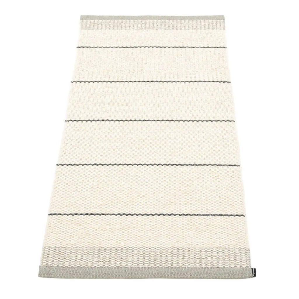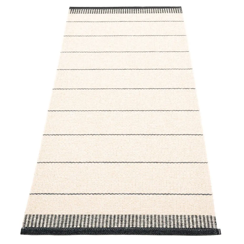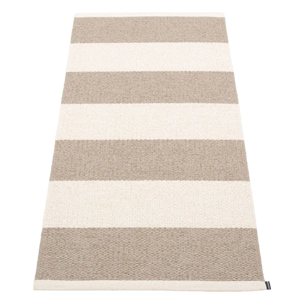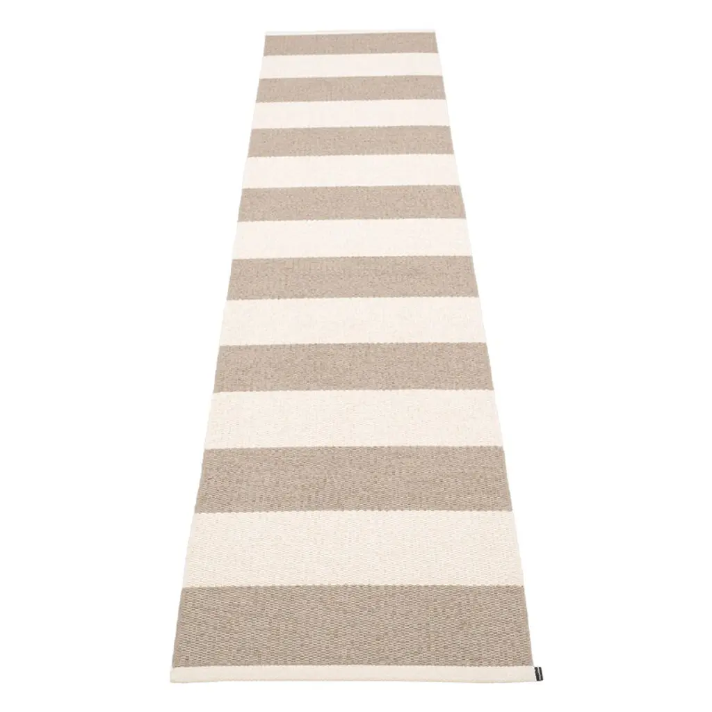 The Bob plastic rugs from Pappelina are woven on a traditional loom in Dalarna, Sweden. Made of phthalate-free PVC ribbon, the rugs are durable and easy to care for, and their striped pattern gives character to any space. Due to its narrow form, the rug can easily be put to use as a stunning hallway runner, kitchen area rug or outdoor rug. The Bob rugs come with an embossed logo at both ends. In 2024, BOB was refreshed with new colors and our luxurious hemmed edge was added.