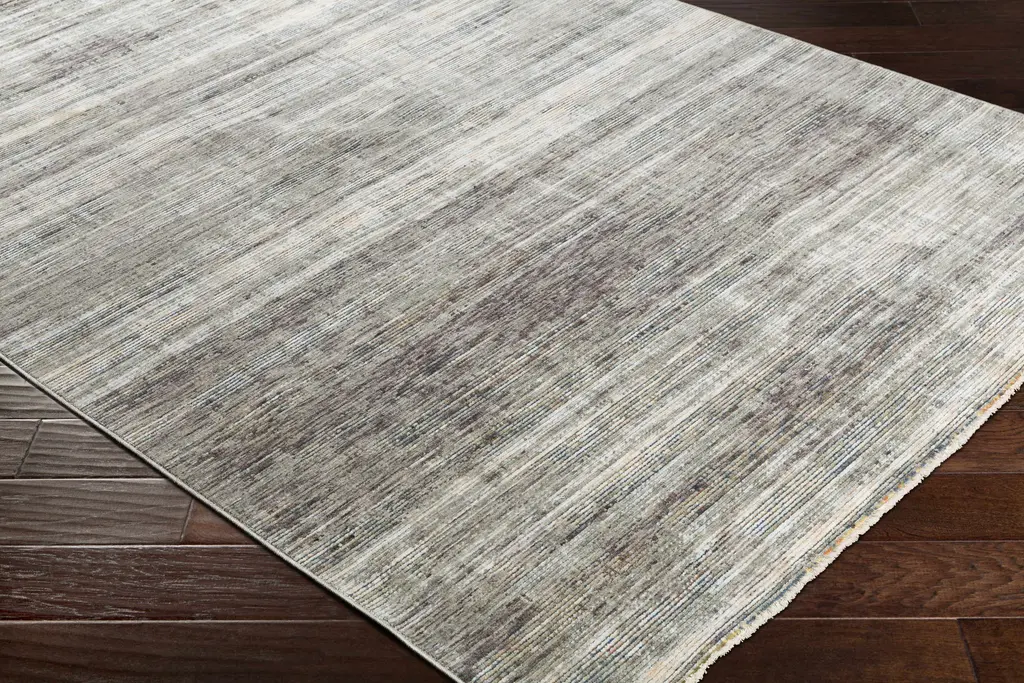 Collection: Braxton Colors: Charcoal, Ivory, Gray, Peach, Medium Gray, Ice Blue Construction: Machine Woven Material: 100% Polyester Pile: Medium Pile Pile Height: 0.24" Styles: Contemporary Made In: Turkey Thickness: 0.31" Fringe Length: 0.6" Price Range: $$$$$ (Most Affordable)