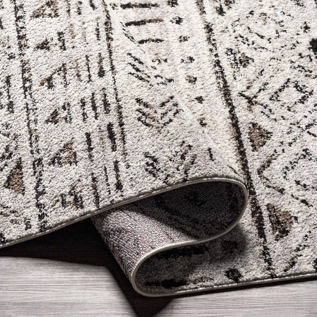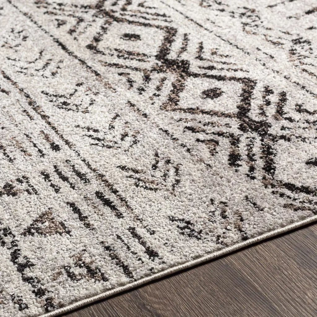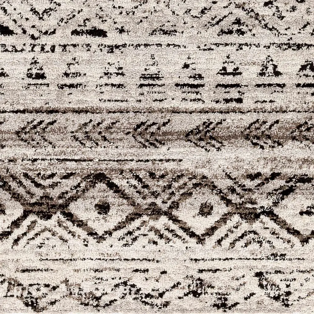 Collection: Buckhall Colors: Black, Dark Brown, Gray, Light Gray Construction: Machine Woven Material: 100% Polypropylene Pile: Medium Pile Pile Height: 0.31" Styles: Transitional,Bohemian Made In: Turkey Thickness: 0.35" Fringe Length: 4.3" Price Range: $$$$$ (Most Affordable)