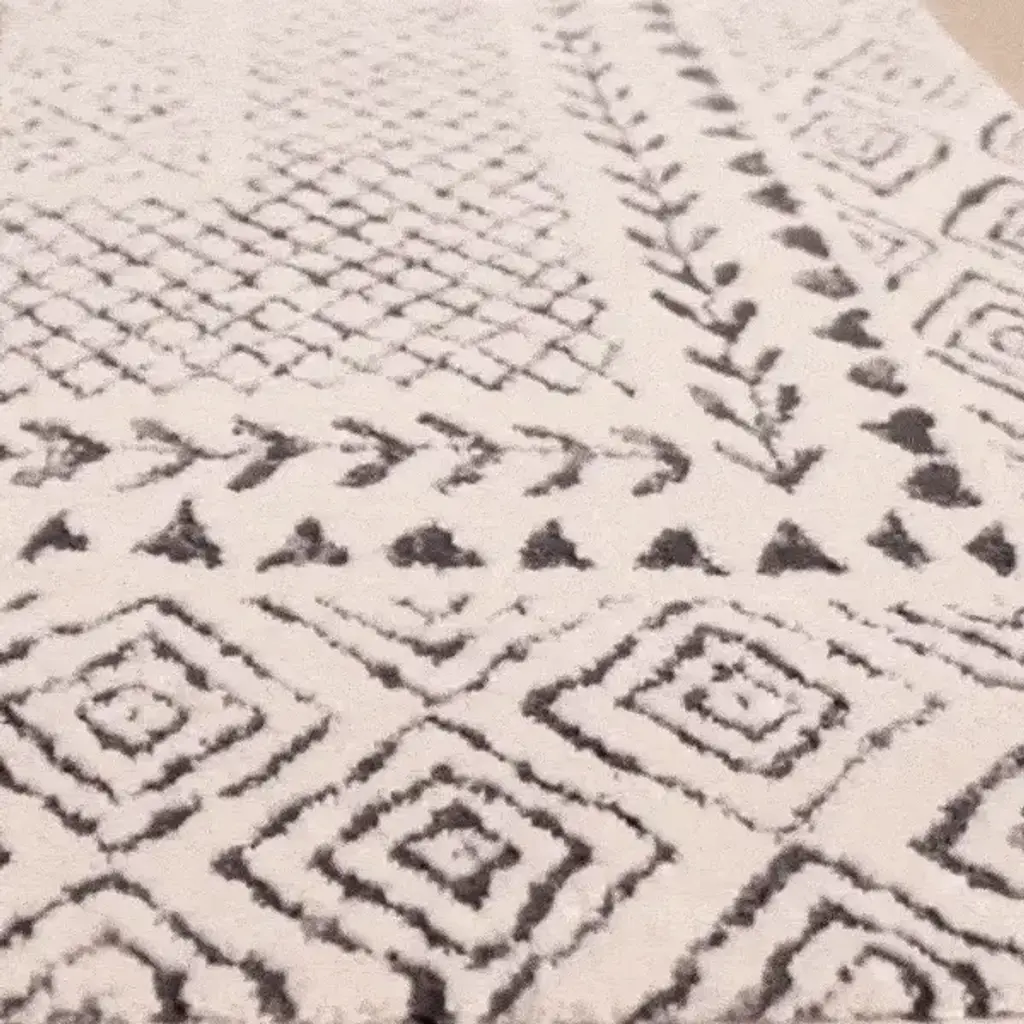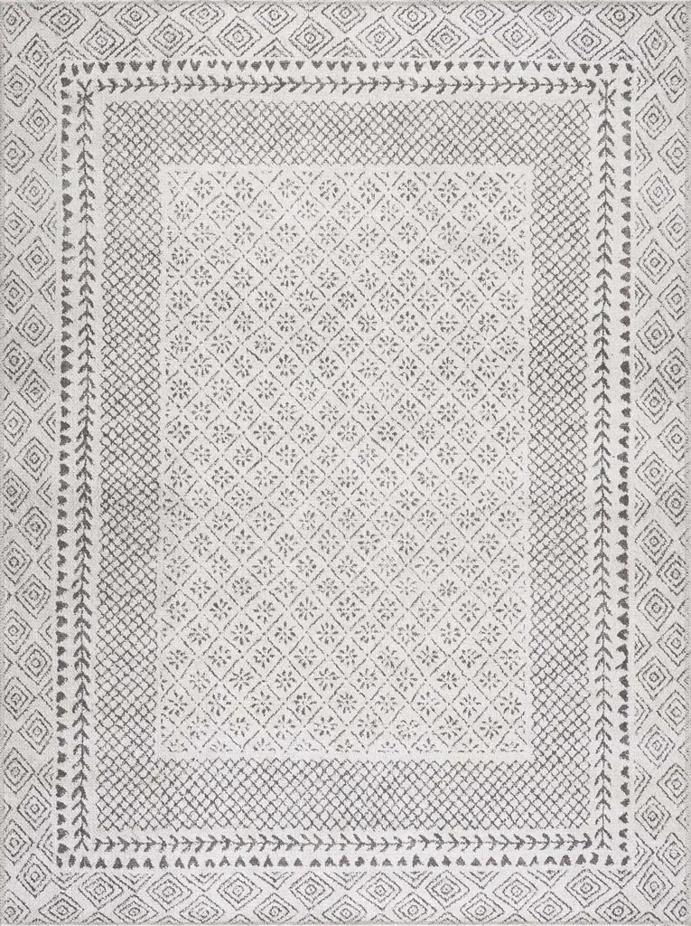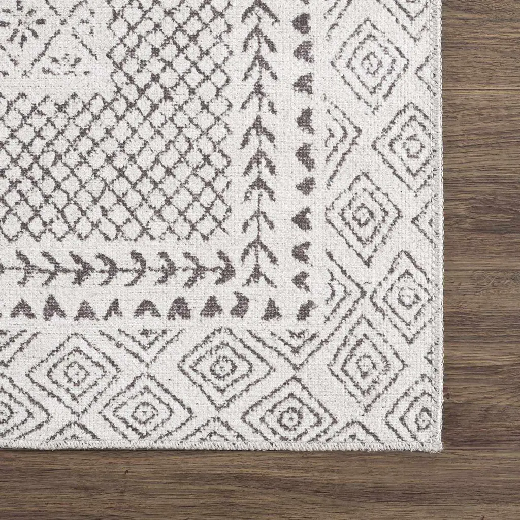 Brand: Hauteloom Collection: Burdette Washable Colors: Light Beige, Charcoal Construction: Machine Woven Material: 60% Polypropylene / 40% Polyester Pile: Low Pile Pile Height: 0.16" Styles: Transitional Backing: Polypropylene Machine Washable: Yes Made In: Turkey Price Range: $$$$$ (Most Affordable)