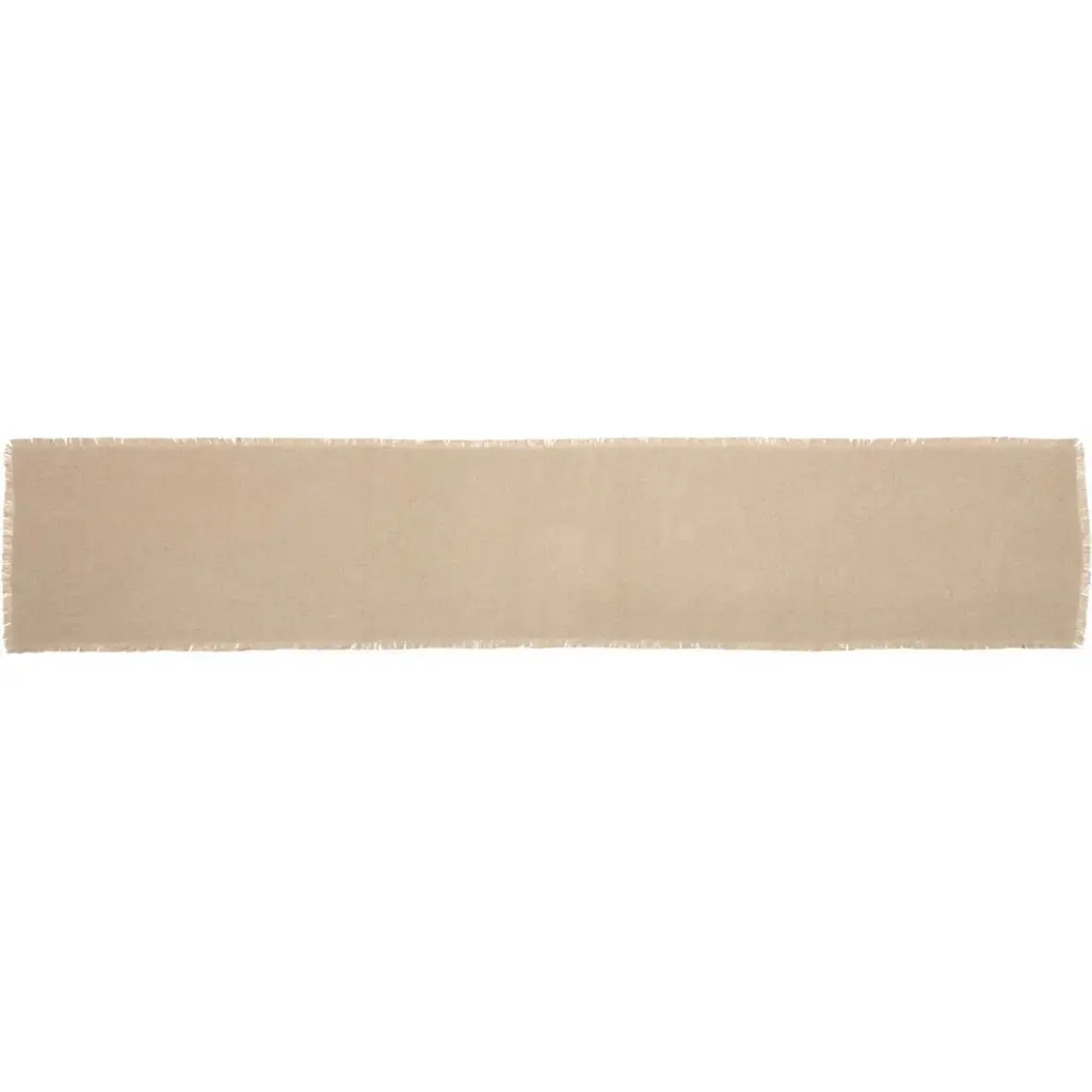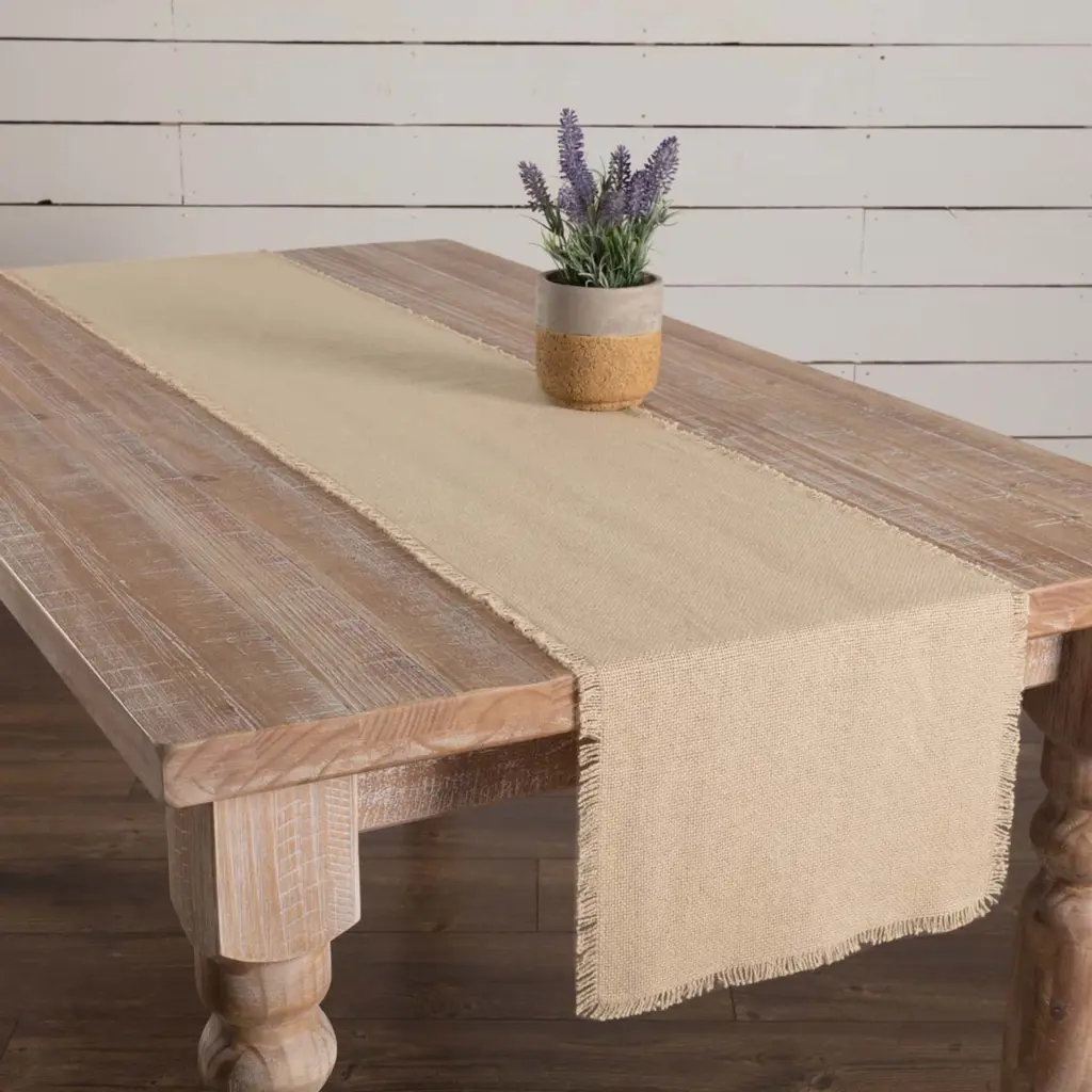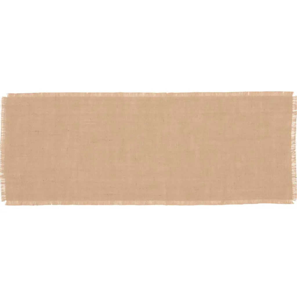 Wintery antique creme is paired with soft burlap to give the Vintage Burlap Runner a Christmas inspired look alive with country splendor. Finished with fringed edges to add a rough spun look of authenticity. 100% cotton.Features PREMIUM CONSTRUCTION: with over two decades experience crafting goods for American homes, our items are built to last for years to come.FARMHOUSE DECOR: fits your farmhouse home with updated country style.QUALITY MATERIAL: made with durable 100% cotton for a proper look and feel.COTTON BURLAP: This runner consists of soft natural cotton burlap for multipurpose useFRINGED: Finished with a textured, fringed edgeSINGLE FABRIC: Machine stitchedSpecifications Material: 100% CottonManufacturer Country: IndiaCare: Machine Wash, Line Dry, Iron safeSizes Available 13" x 36" - 0.3 lb13" x 48" - 0.3 lb13" x 72" - 0.4 lb13" x 90" - 0.5 lbColors Available Natural - NaturalVintage White - Vintage Tan* Due to the loose weave nature of the fabric, minor variances will occur. Sizes are approximate.