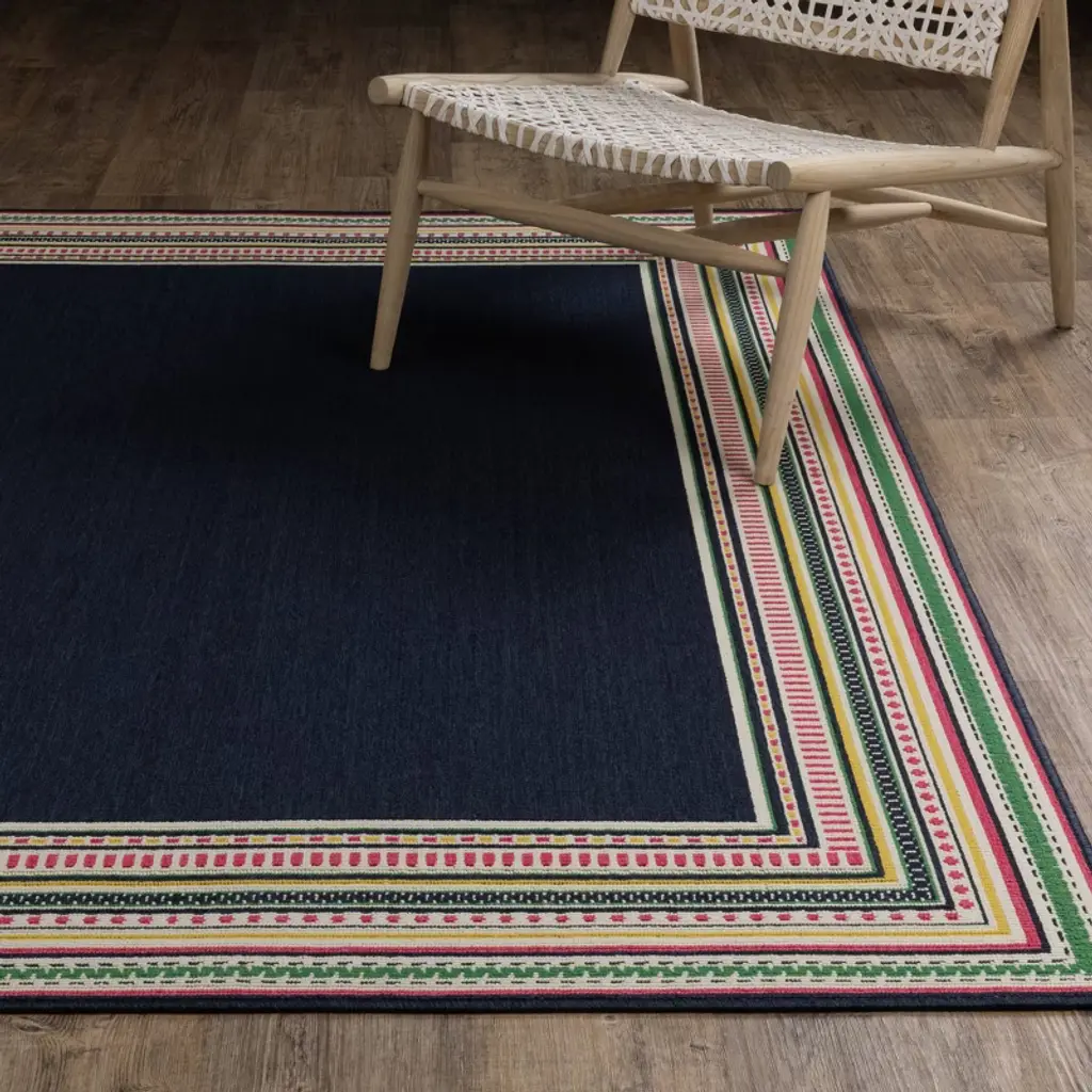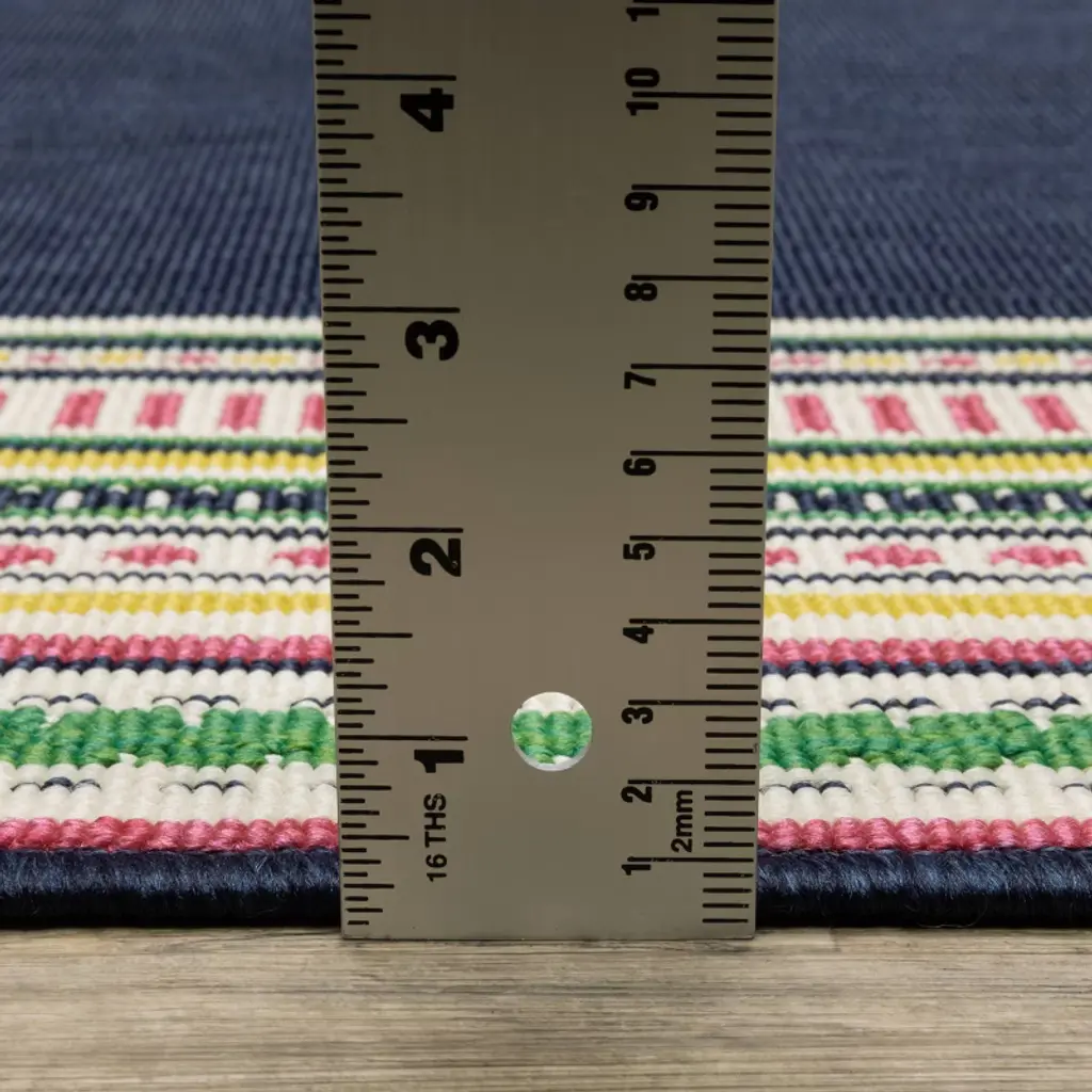 Captiv8e Designs 1'10"x7'3" Hilo Multi Striped Border Navy Indoor/outdoor Runner Rug
