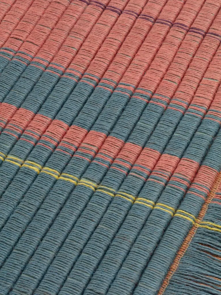 Omote is a collection of rugs designed by designer Mae Engelgeer for the CC-Tapis brand. The Omote rug collection is made of jute and felted wool made by hand loom.One of the distinctive elements of the Omote collection are the bangs on the short sides of the rug, which add a touch of charm and character to their already sophisticated design. These fine details lend a sense of movement and dynamism to the rug, further enriching the visual and tactile experience. The natural beauty and unique texture of the materials give Omote rugs a feeling of warmth and authenticity. The clever use of colors and geometries creates an engaging visual effect. Available in three sizes to suit a variety of environments.MATERIALS: jute and felted woolTECHNIQUE: handloomDIMENSION:92x300 cm