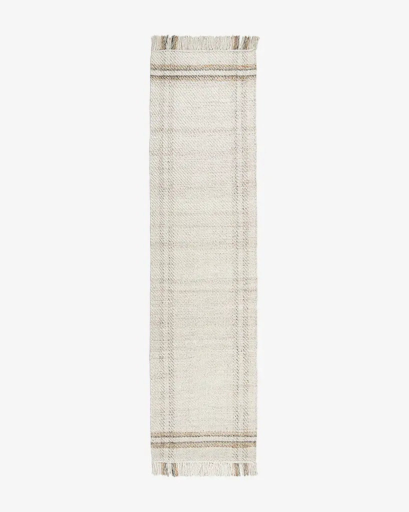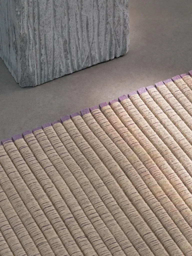 Omote is a collection of rugs designed by designer Mae Engelgeer for the CC-Tapis brand. The Omote rug collection is made of jute and felted wool made by hand loom.One of the distinctive elements of the Omote collection are the bangs on the short sides of the rug, which add a touch of charm and character to their already sophisticated design. These fine details lend a sense of movement and dynamism to the rug, further enriching the visual and tactile experience. The natural beauty and unique texture of the materials give Omote rugs a feeling of warmth and authenticity. The clever use of colors and geometries creates an engaging visual effect. Available in three sizes to suit a variety of environments.MATERIALS: jute and felted woolTECHNIQUE: handloomDIMENSION:92x300 cm