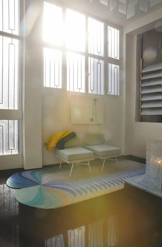Hand knotted in the cc-tapis atelier in Kathmandu, Nepal. The rug is made with a cotton weave, Himalayan wool and pure silk coming from the areas surrounding the atelier. 152.000 individual knots per square meter approximately. The sale of every rug supports cc-for education. Size: 5' x 10.5' ft. A+ (152.000 knots/sqm approximate)A design story revolving around color, a succession of chromatic evolutions developed in a composite universe of organic shapes. A digital drawing which allows every rug to display an evolution of colorful wool -sometimes unexpectedly placed side by side, outlining multiple chromatic associations. A visual exercise aimed to transform the intangible idea of shade and hue into a finely produced and sophisticated product.