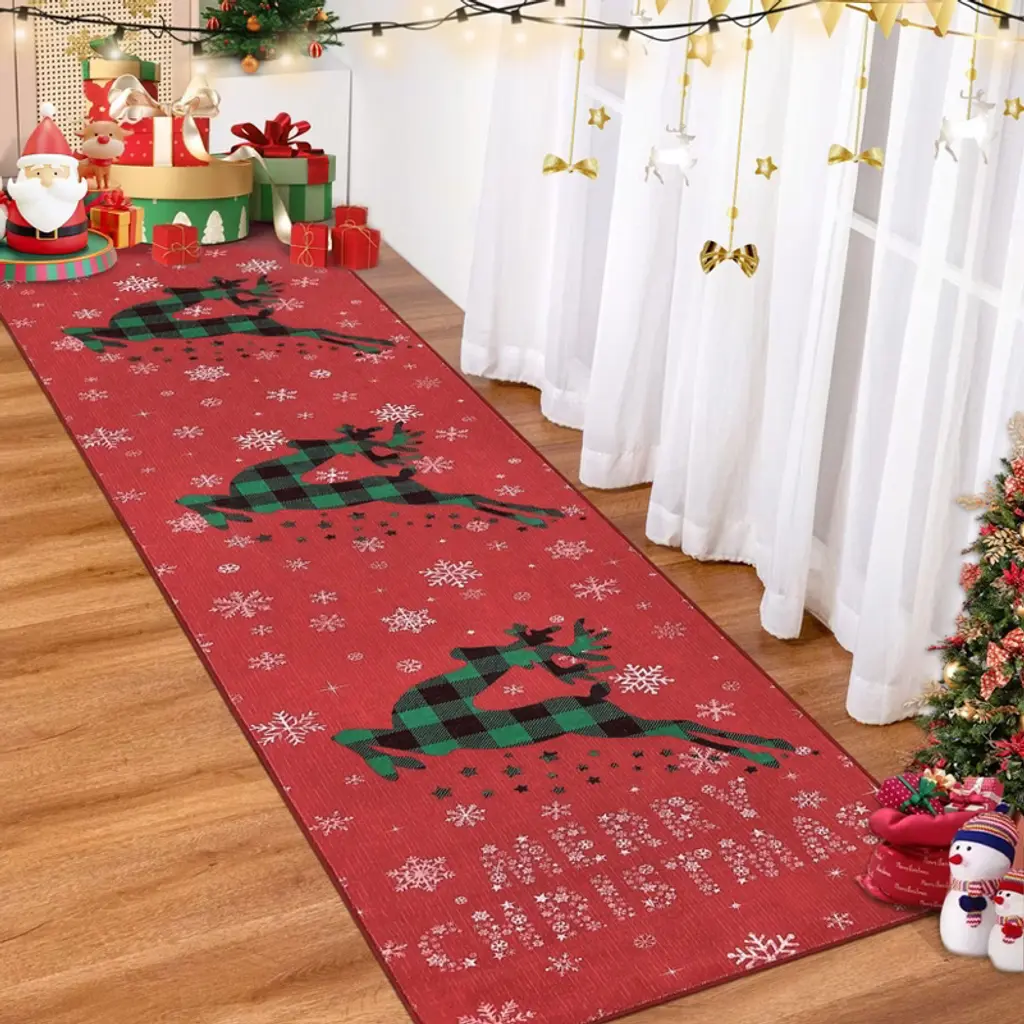 Refresh your home with this easy-to-care-for Christmas rug, crafted from sturdy polyester for a cozy feel. The size fits hallways, entryways, and more—offering festive style that suits any decor. Shed-free tassels keep things tidy, while the machine-washable design ensures simple maintenance. A versatile addition that blends comfort and cheerful Christmas spirit in any room.