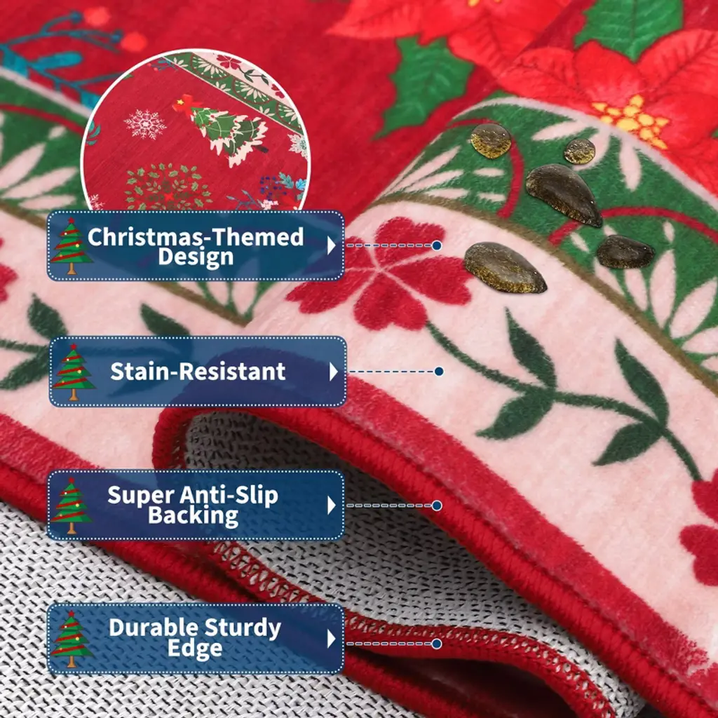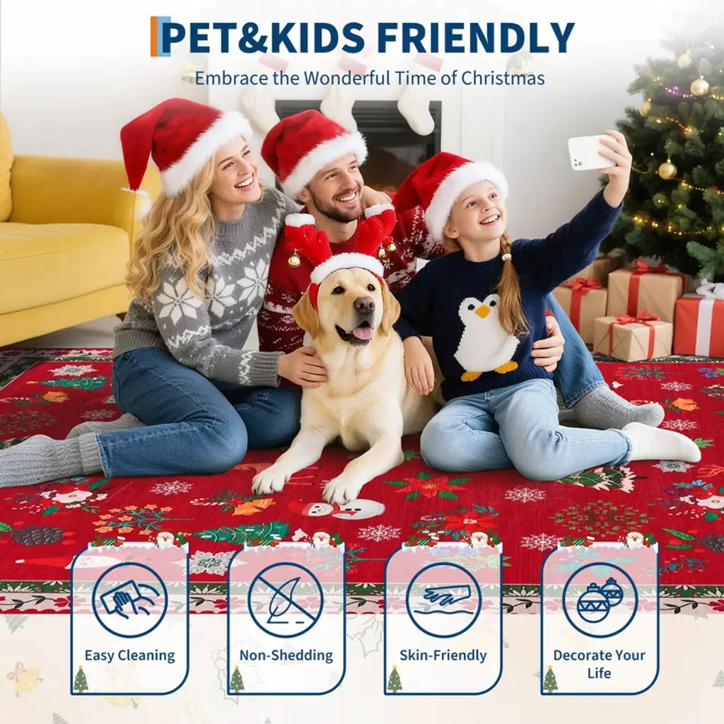 Christmas Rugs for Living Room Bedroom Are you ready to turn your home into a cozy winter wonderland this Christmas? Imagine stepping onto a rug that's ultra-soft, safe for kids and pets, and instantly fills your space with holiday cheer. Wouldn't it be wonderful if cleaning up after festive gatherings was effortless—just toss it in the wash and you're done? Looking for a Christmas rug that's not only beautiful, but also non-slip, space-saving, and perfect for any room? Whether you need a warm touch for your bedroom, a welcoming flair for your entryway, or a thoughtful gift for loved ones, why not choose a rug that brings comfort, convenience, and festive joy all season long? Highlights at a Glance: Festive Christmas patterns with Santa, snowflakes, and reindeerUltra-soft faux wool, cozy low pileNon-slip TPR backing for safe indoor useFoldable and easy to store or travel withMachine washable and stain resistantPerfect for living room, bedroom, entryway, or nurseryIdeal holiday gift for family and friends Specification:Material: PolyesterColor: RedSize: 2x6, 2x8, 2x10, 4x6, 5x7, 8x10, 9x12 Application: Bedroom/Living Room/Dining Room/Hallway/Office Packing List:1 x Christmas Rug1 x Instruction Manual Friendly Note:Temporary creases may occur upon arrival, but rolling it out will help it settle quickly. Avoid using bleach to maintain the bedroom rug's color and texture. The color may appear different depending on the lighting conditions.