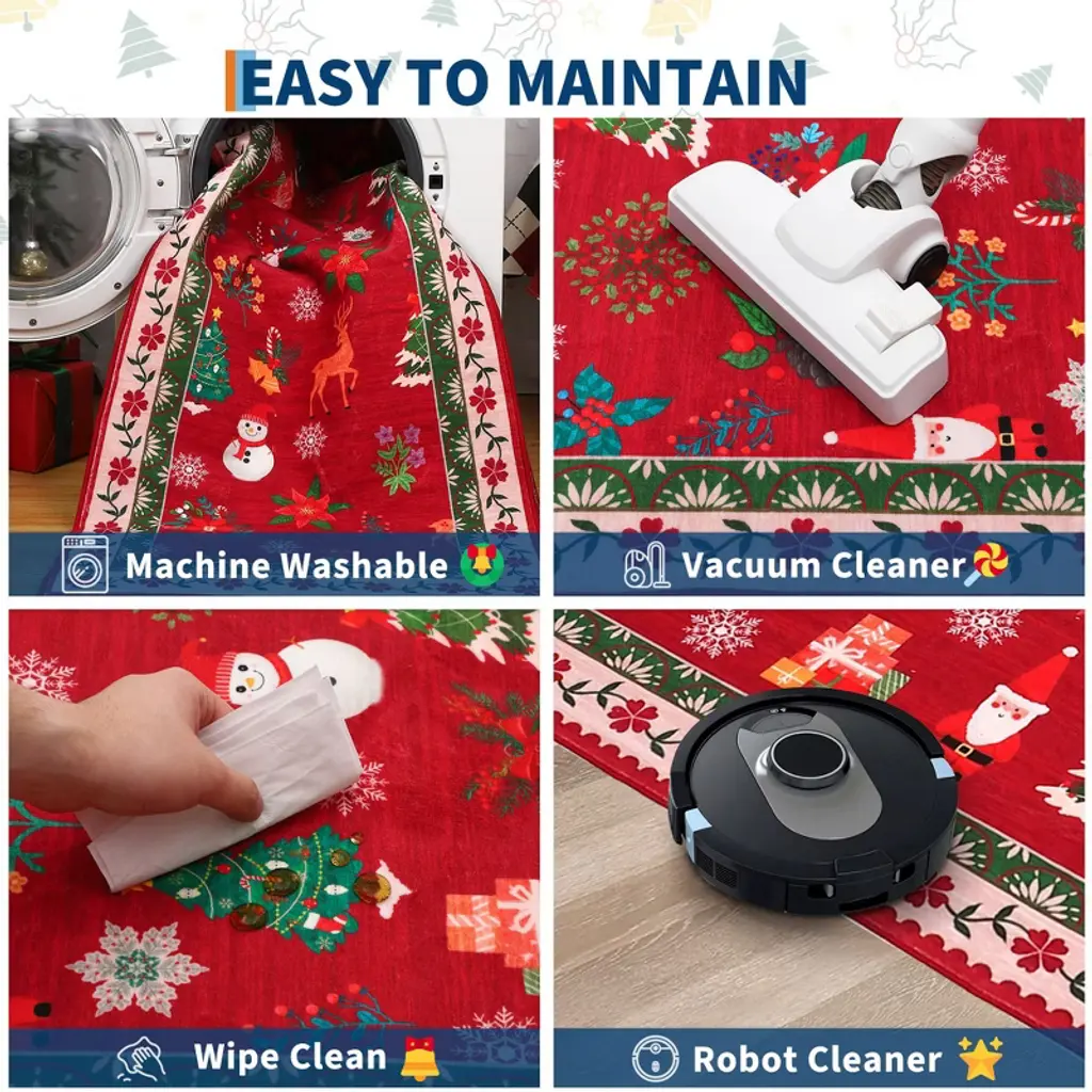 Christmas Rugs for Living Room Bedroom Are you ready to turn your home into a cozy winter wonderland this Christmas? Imagine stepping onto a rug that's ultra-soft, safe for kids and pets, and instantly fills your space with holiday cheer. Wouldn't it be wonderful if cleaning up after festive gatherings was effortless—just toss it in the wash and you're done? Looking for a Christmas rug that's not only beautiful, but also non-slip, space-saving, and perfect for any room? Whether you need a warm touch for your bedroom, a welcoming flair for your entryway, or a thoughtful gift for loved ones, why not choose a rug that brings comfort, convenience, and festive joy all season long? Highlights at a Glance: Festive Christmas patterns with Santa, snowflakes, and reindeerUltra-soft faux wool, cozy low pileNon-slip TPR backing for safe indoor useFoldable and easy to store or travel withMachine washable and stain resistantPerfect for living room, bedroom, entryway, or nurseryIdeal holiday gift for family and friends Specification:Material: PolyesterColor: RedSize: 2x6, 2x8, 2x10, 4x6, 5x7, 8x10, 9x12 Application: Bedroom/Living Room/Dining Room/Hallway/Office Packing List:1 x Christmas Rug1 x Instruction Manual Friendly Note:Temporary creases may occur upon arrival, but rolling it out will help it settle quickly. Avoid using bleach to maintain the bedroom rug's color and texture. The color may appear different depending on the lighting conditions.