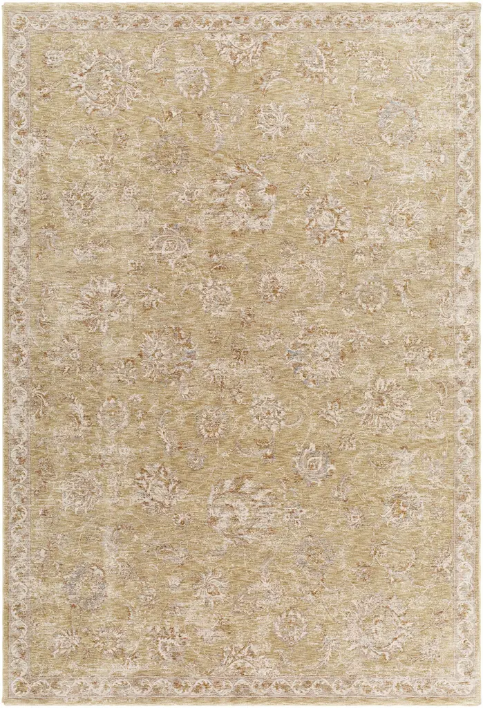 Collection: Chyron Colors: Olive, Cream, Tan, Medium Gray, Light Brown Construction: Machine Woven Material: 100% Polyester Pile: Medium Pile Pile Height: 0.31" Styles: Traditional Made In: Turkey Thickness: 0.39" Price Range: $$$$$ (Affordable)