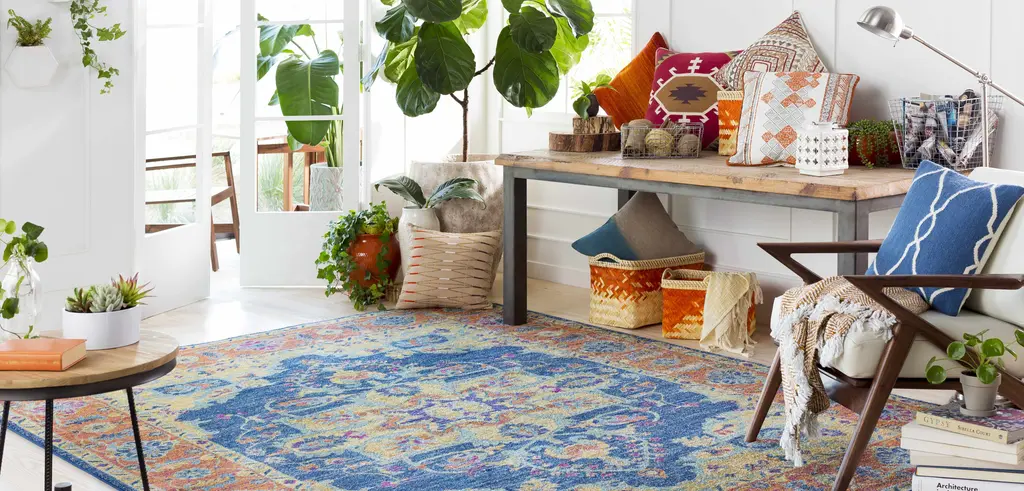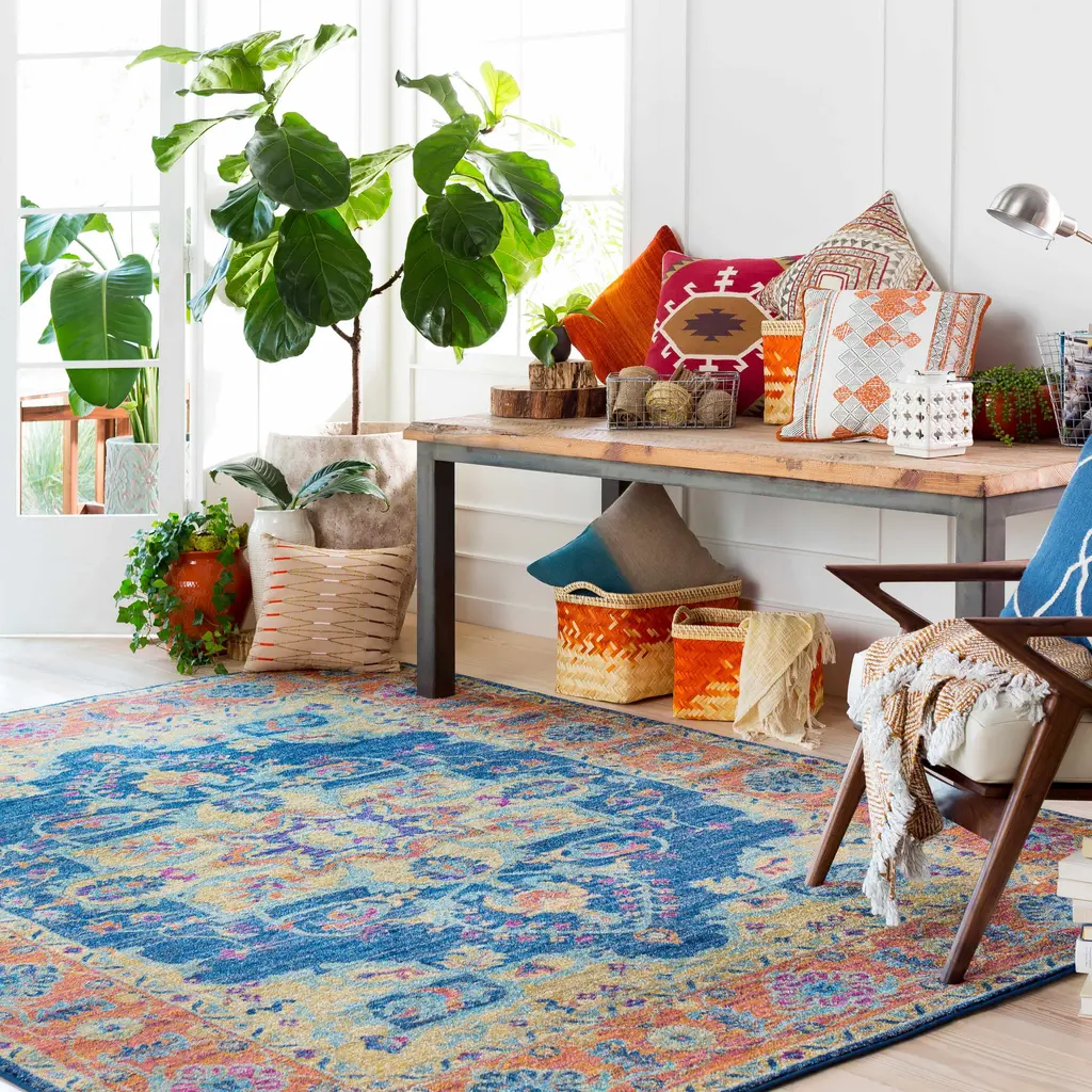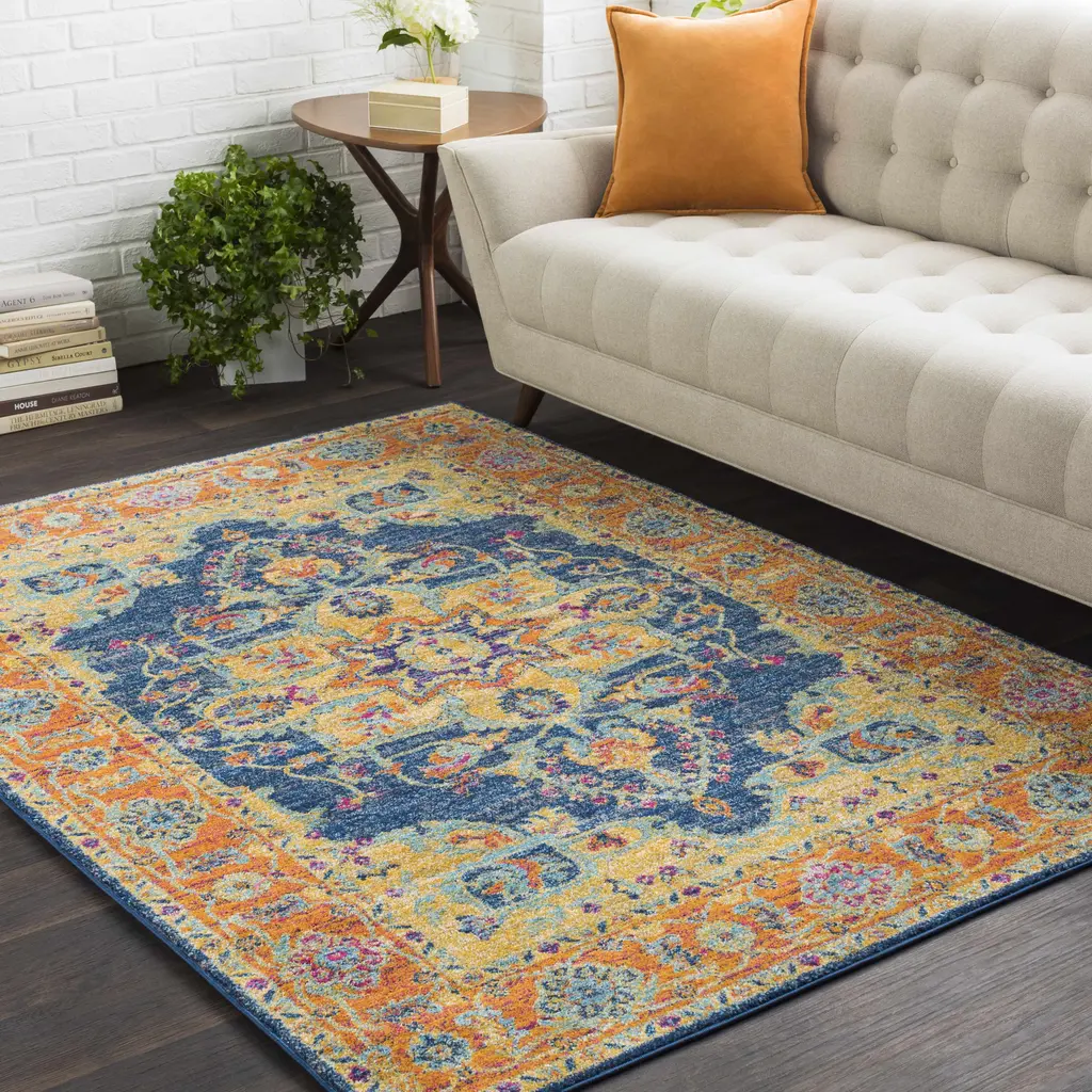 Collection: Cibola Colors: Teal, Burnt Orange, Burgundy, Medium Gray, Mustard, Navy Construction: Machine Woven Material: 100% Polypropylene Pile: Medium Pile Pile Height: 0.26" Styles: Traditional Made In: Turkey Thickness: 0.45" Price Range: $$$$$ (Most Affordable)