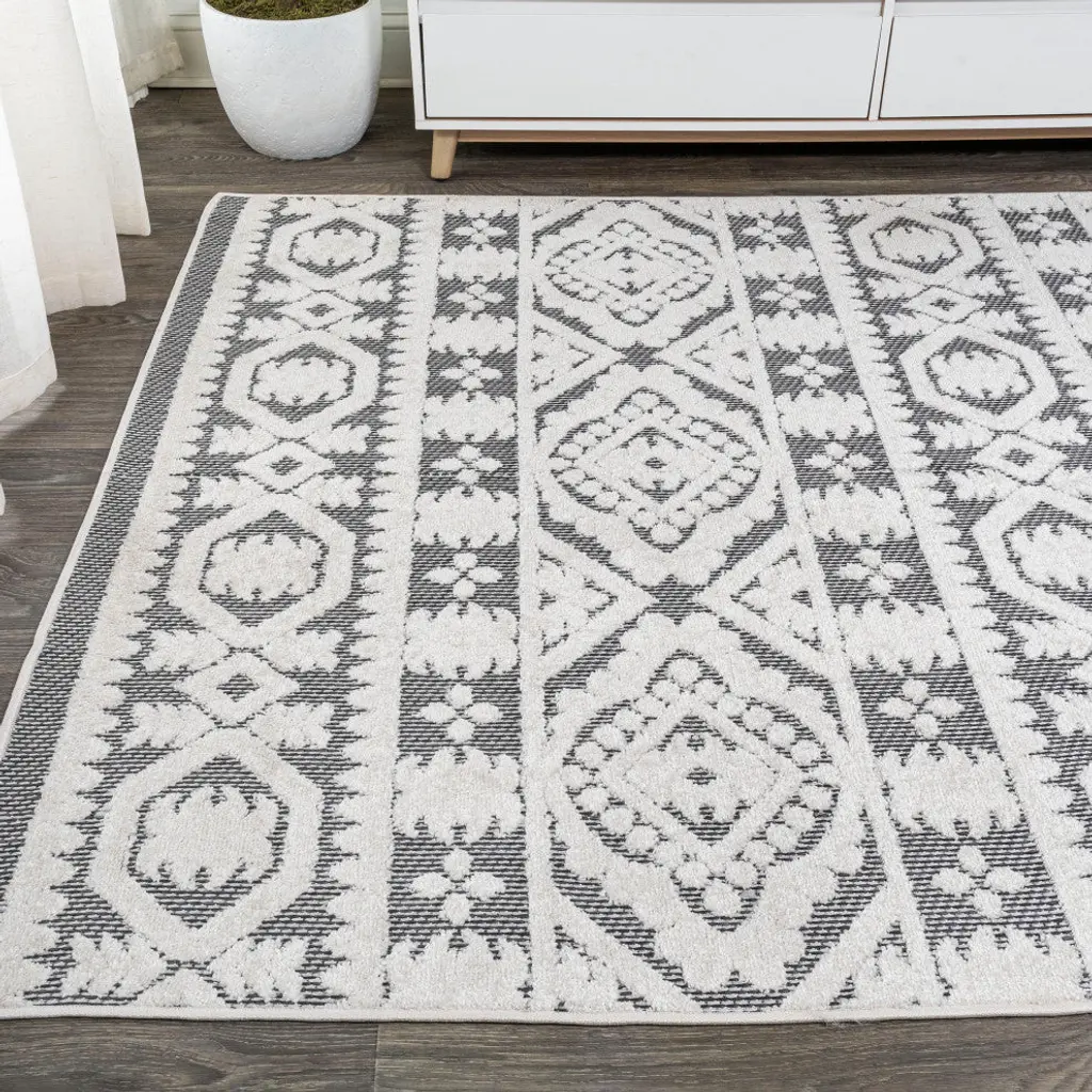 Inspired by Mediterranean tile designs, our classic rug is power-loomed with a short pile. The ornate geometric pattern is woven on a field of ivory; the all-over design is perfect for a living room, dining room, kitchen, bedroom or entry. Add some Old World Spanish flair to your home with this easy-care rug. Features:• Power loomed with a 0. 31" pile that''s soft and durable• The soft black and ivory color scheme is a trendy take on neutral, graphic rugs• Made from easy-care polypropylene - just sweep, vacuum or hose down with mild soap and water• 100% Polypropylene• No backing, use of rug pad is recommended (sold separately)• Power Loomed in Turkey• Actual Dimension: 2 ft. 2 in. x 8 ft. • Color: White/Black• Thickness measures: 0. 31 in. • Available in multiple sizes and/or colorsRug Care:• Vacuum regularly and spot clean as needed; avoid direct and continuous exposure to sunlight; use brushless vacuum; remove spills immediately; if liquid, blot with clean, undyed cloth by pressing firmly around the spill to absorb as much as possible; for hard to remove stains, professional rug cleaning is recommended; store in a dry, well ventilated area and rotate for consistent wear• Packing and shipping may cause temporary creases in rugs, which will flatten out after a week on the floor; to expedite the process, try back-rolling your rug before laying it down, and then allow ample time for the remaining creases to relax• Please Note: Due to differences in monitors, some rug colors may vary slightly. Lengths and widths may vary from the published dimensions. Patterns may vary slightly according to shape and size selected. About us:Style your floors with JONATHAN Y. By combining fine craftsmanship and design, this New York creative studio is bringing fashion to your floors. The collection mixes sustainable organic materials, vibrant colors and trend worthy styles to create JONATHAN Y''s distinctive catalog of rugs.