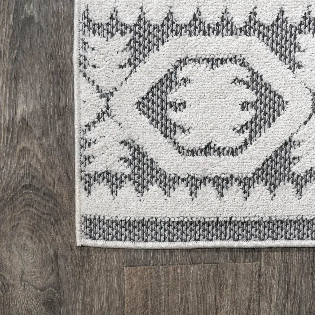 Inspired by Mediterranean tile designs, our classic rug is power-loomed with a short pile. The ornate geometric pattern is woven on a field of ivory; the all-over design is perfect for a living room, dining room, kitchen, bedroom or entry. Add some Old World Spanish flair to your home with this easy-care rug.Features:• Power loomed with a .31" pile that''s soft and durable• Made from easy-care polypropylene - just sweep, vacuum or hose down with mild soap and water• 100% Polypropylene• No backing, use of rug pad is recommended (sold separately)• Power Loomed in Turkey• Thickness measures: 0.31 in.• Available in multiple sizes and/or colorsRug Care:• Vacuum regularly and spot clean as needed; avoid direct and continuous exposure to sunlight; use brushless vacuum; remove spills immediately; if liquid, blot with clean, undyed cloth by pressing firmly around the spill to absorb as much as possible; for hard to remove stains, professional rug cleaning is recommended; store in a dry, well ventilated area and rotate for consistent wear• Packing and shipping may cause temporary creases in rugs, which will flatten out after a week on the floor; to expedite the process, try back-rolling your rug before laying it down, and then allow ample time for the remaining creases to relax• Please Note: Due to differences in monitors, some rug colors may vary slightly. Lengths and widths may vary from the published dimensions. Patterns may vary slightly according to shape and size selected.About us:Style your floors with JONATHAN Y. By combining fine craftsmanship and design, this New York creative studio is bringing fashion to your floors. The collection mixes sustainable organic materials, vibrant colors and trend worthy styles to create JONATHAN Y''s distinctive catalog of rugs.