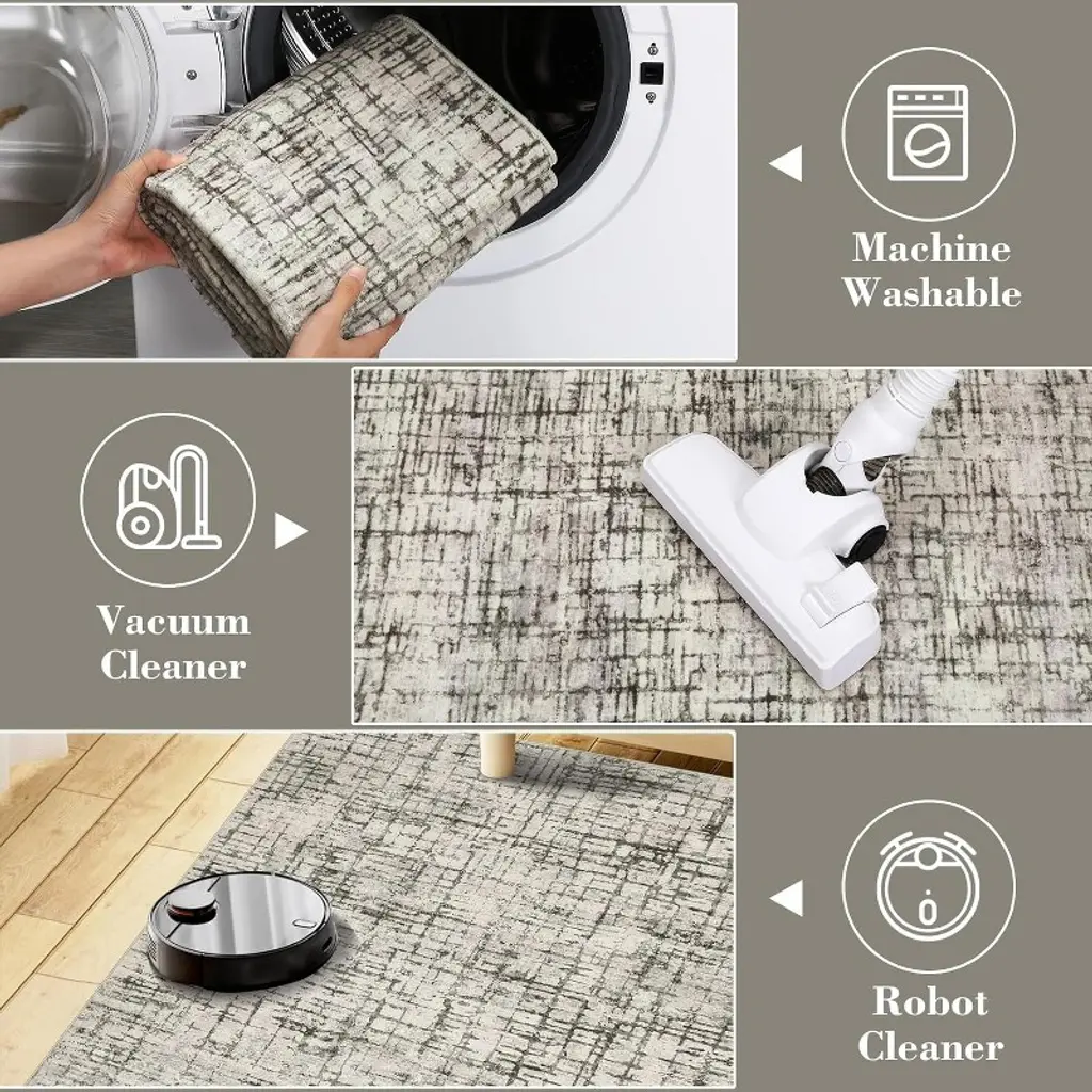 Coucheta 5X7ft (152x218cm) Washable Runner, Non-slip Kitchen Rug With Modern Geometric Pattern For Hallway,various Rooms,taupe
