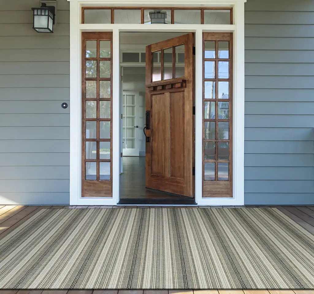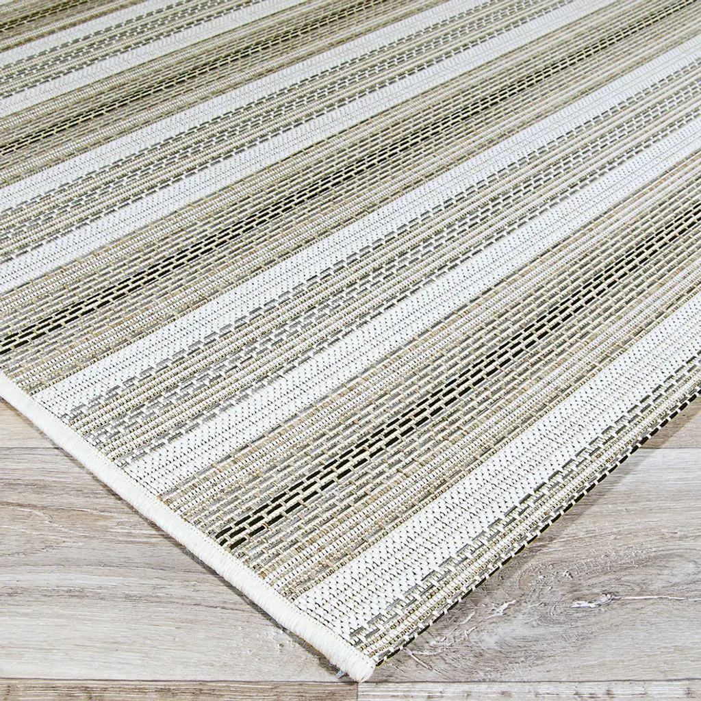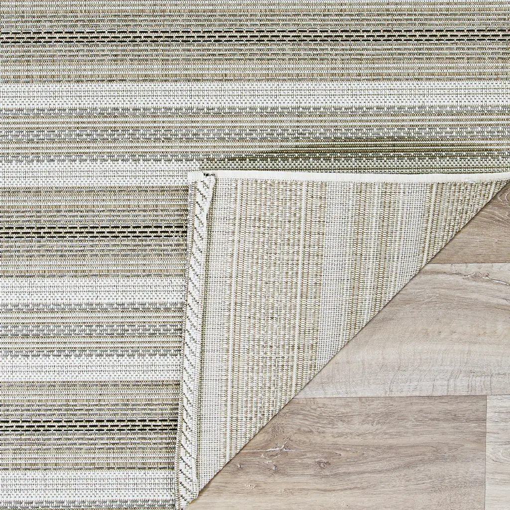 Relax in the comfort of your home with the effortlessly modern Monaco Collection. The varying motifs, ranging from graphic stripes to geometric patterns, are sure to fit in seamlessly in both your outdoor spaces and indoor rooms. These multi-purpose area rugs are constructed in a unique structured flatweave, boasting a smooth surface that is perfect for outdoor or indoor use. Woven using 100% fiber-enhanced Courtron polypropylene, each of the subtle patterns offer a highly durable pile with little upkeep required. Designed specifically to withstand outdoor elements, Monaco is UV stabilized to ensure each area rug in the collection retains its color due to sun exposure and other weather conditions, as well as mold and mildew resistant. The neutral color scheme found in Monaco, including cool blues, muted greens, soft Grays and sandy beiges, is sure to transport you to your very own in-home retreat.