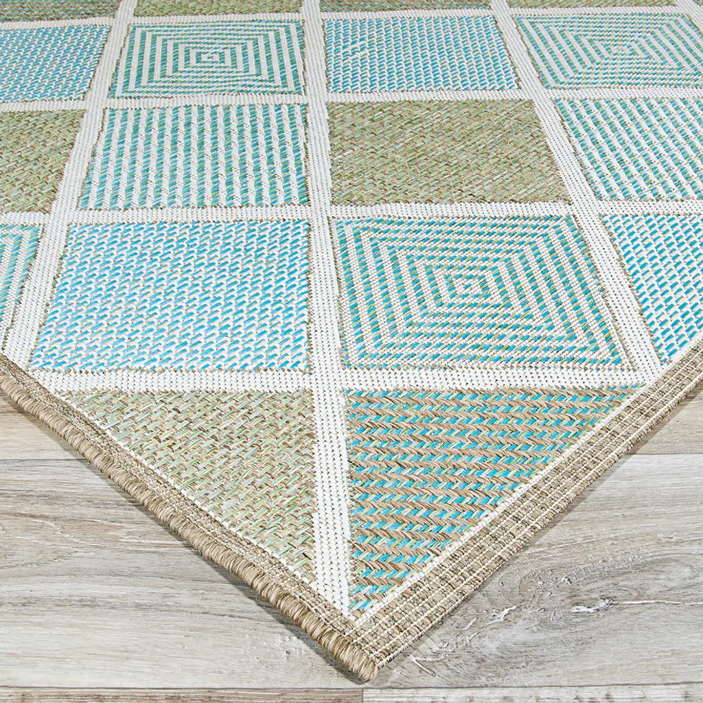 Relax in the comfort of your home with the effortlessly modern Monaco Collection. The varying motifs, ranging from graphic stripes to geometric patterns, are sure to fit in seamlessly in both your outdoor spaces and indoor rooms. These multi-purpose area rugs are constructed in a unique structured flatweave, boasting a smooth surface that is perfect for outdoor or indoor use. Woven using 100% fiber-enhanced Courtron polypropylene, each of the subtle patterns offer a highly durable pile with little upkeep required. Designed specifically to withstand outdoor elements, Monaco is UV stabilized to ensure each area rug in the collection retains its color due to sun exposure and other weather conditions, as well as mold and mildew resistant. The neutral color scheme found in Monaco, including cool blues, muted greens, soft Grays and sandy beiges, is sure to transport you to your very own in-home retreat.