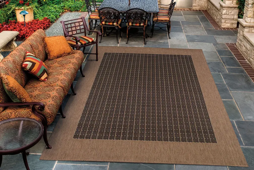 Couristan Recife Checkered Field Indoor/outdoor Area Rug, Black/cocoa, 7'6 Round