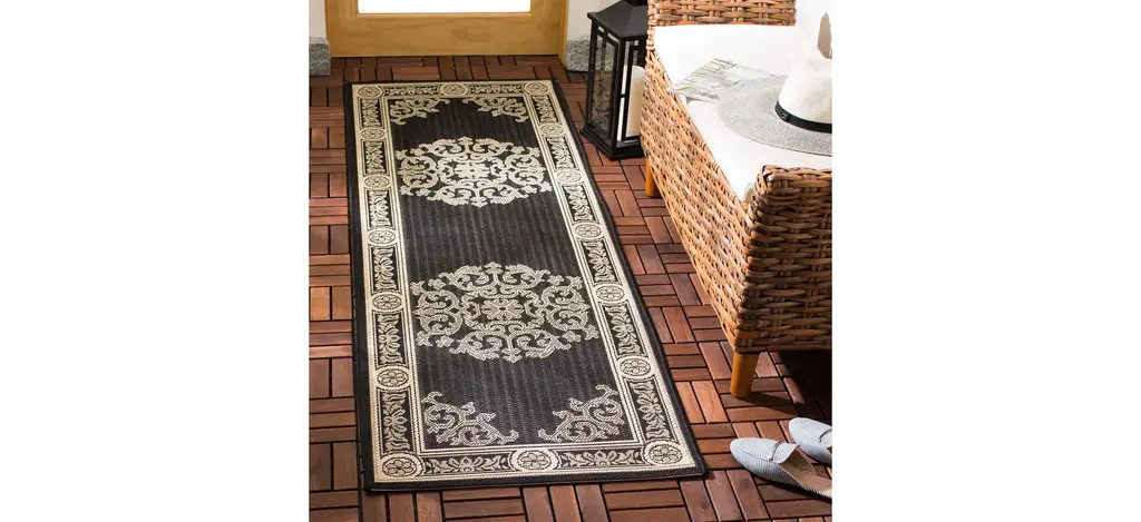 The Courtyard Bordered Indoor/Outdoor Runner Rug brings interior design style to busy living spaces, inside and out. Courtyard is beautifully styled with patterns from classic to contemporary, all in colors, shapes, and sizes to fit any area. Courtyard area rugs are made with enhanced polypropylene in a special sisal weave that achieves intricate designs that are easy to maintain - simply clean with a garden hose.
