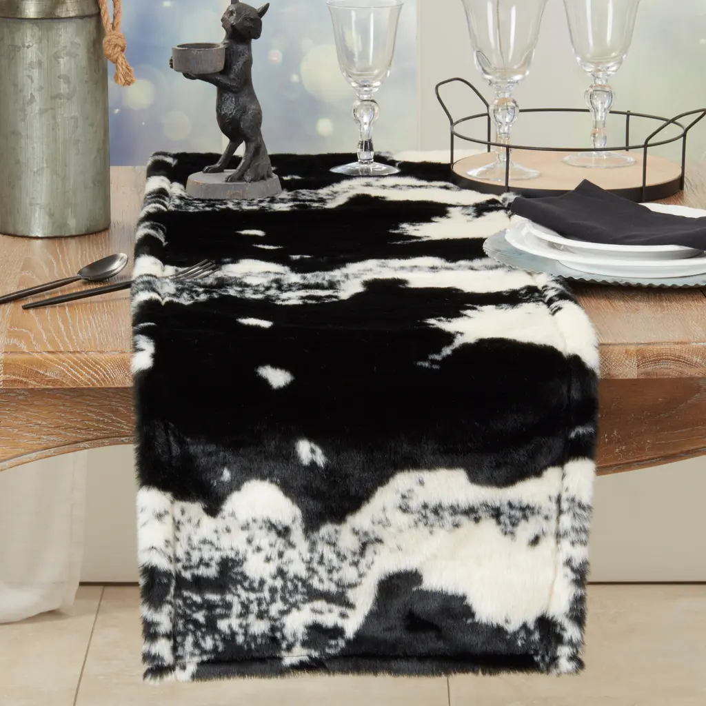Cow Hide Design Faux Fur Runner - 16"x54" - Black