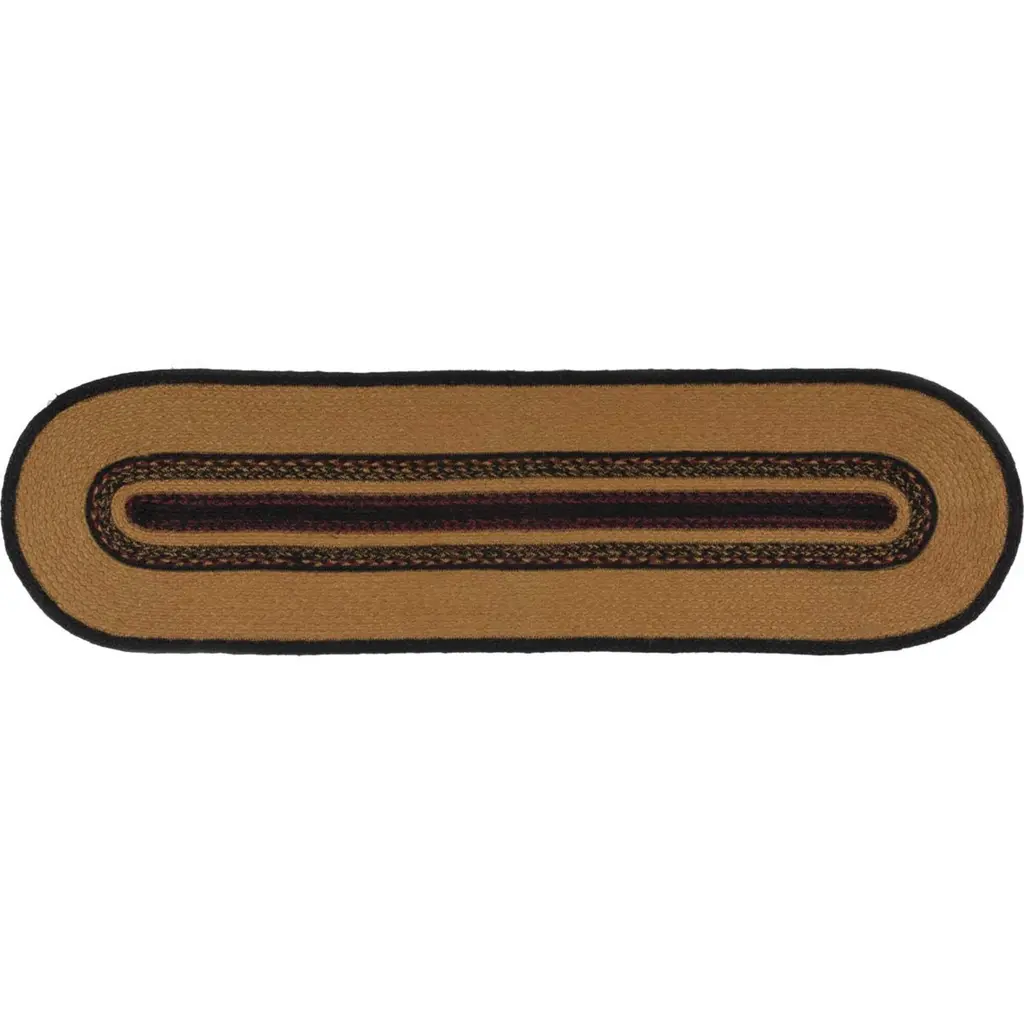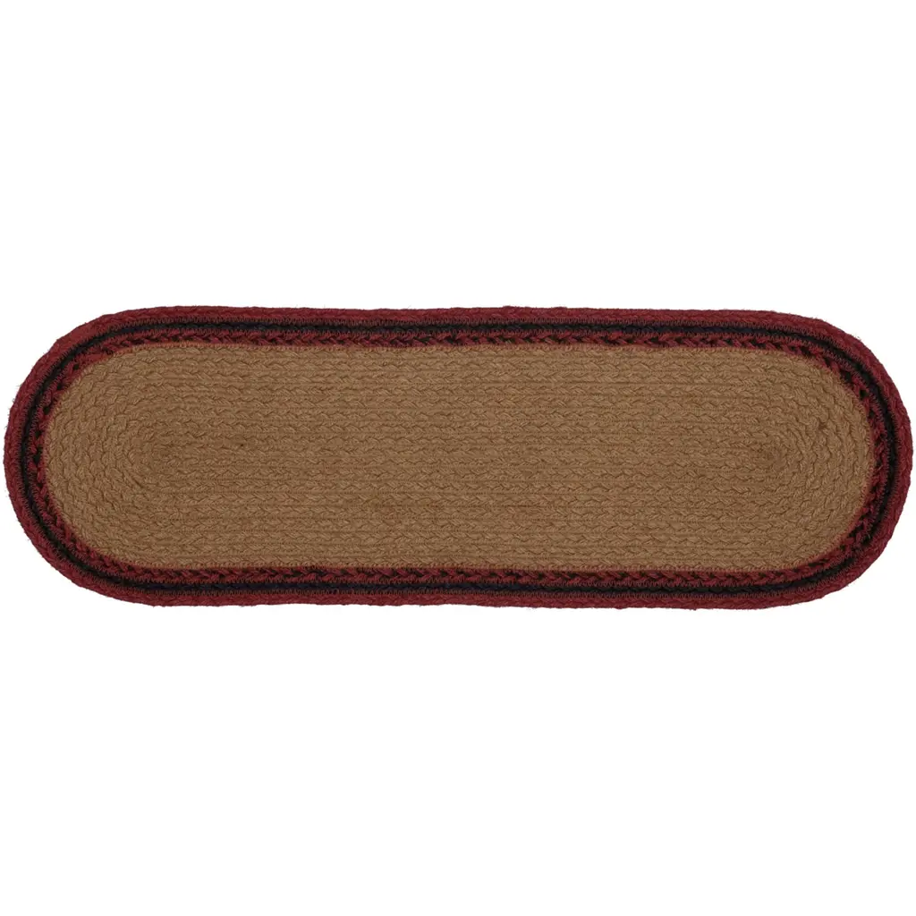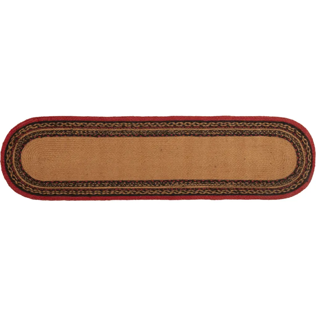 Bring log cabin charm into the home with the Cumberland Jute Runner Oval. Chili pepper reds, caviar blacks, and natural tans make this runner a woodcutter's dream. The Cumberland Jute Runner Oval proudly displays majestic moose stencils.Features PREMIUM CONSTRUCTION: with over two decades experience crafting goods for American homes, our items are built to last for years to come.RUSTIC DECOR: cabin style to fit any lodge, cabin, lake house, or retreat.QUALITY MATERIAL: made with durable 100% jute for a proper look and feel.Concentric braids of almond, cherry red, and black juteBlack moose stencil on each end facing each otherBraided: Machine braided, Machine stitchedSpecifications Material: 100% JuteColors: Almond, Cherry Red, RavenManufacturer Country: IndiaCare: Spot CleanSizes Available 8" x 24" - 0.4 lb13" x 36" - 1 lb13" x 48" - 1.3 lb* To prevent colors from bleeding do not use chemicals or wet clean this item. A rug pad is recommended to keep your surfaces safe from color bleeding and abrasiveness of the jute fibers.
