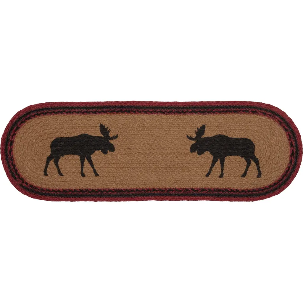 Cumberland Moose Stenciled Jute Runner - 8X24 - Natural/chili Pepper Red/caviar