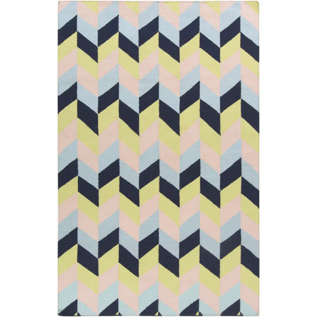 Collection: Curtin Colors: Navy, Sage, White, Blue Construction: Hand Woven Material: 100% Wool Pile: No Pile Styles: Contemporary Made In: India Thickness: 0.16" Price Range: $$$$$ (Affordable)