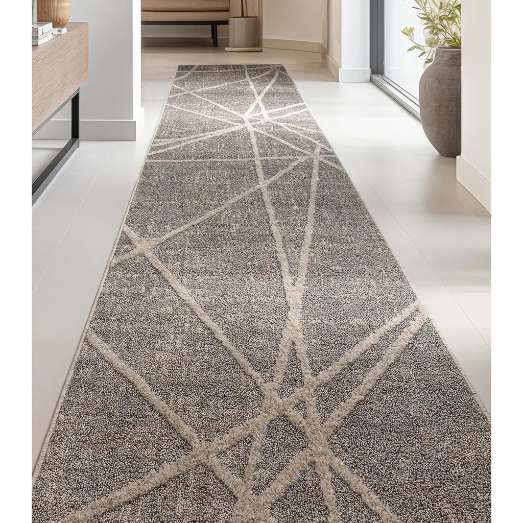 Custom Size Runner Harlow Telas Modern Geometric Lines Soft Stair Rug - 2' 3" X 10' - Grey - Runner