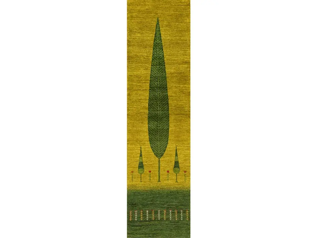 Cypress Tree of Life Runner is a rectangular fabric rug.Zollanvari Super Fine.Trees, flowers and animals (principally lions) are design themes that are used by tribal women to weave some of Zollanvari’s most original Gabbehs. The weavers are given patterns and colour ranges (often inspired by ancient and archaic patterns such as the ‘Tree of Life’) but have a free hand in producing these works of woven art using their imaginations and the traditional design vocabulary passed down through each new generation of weavers. This makes each Gabbeh unique and individual. Flora & Fauna design Gabbehs are also available in Zollanvari Super Fine (Kashkuli, Luribaft and Bulurbaft) and Zollanvari Fine qualities.The designs are available in custom and bespoke sizes and colours.