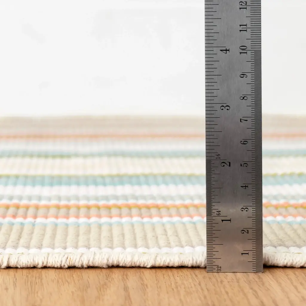 Add pretty pops of color to your space with our Daphne Stripe Handwoven Cotton Rug. Perfect as a runner for hallways or stairways, it’s soft underfoot, lightweight, and low-profile. Its durable construction makes it ideal for high-traffic spaces.
