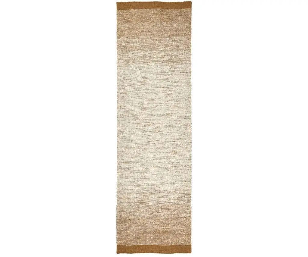 The Darvi Rug Runner is artfully handwoven from a textured blend of wool and cotton. This uniquely beautiful rug comes in bright tones of ochre ombre. Darker outer tones slowly merge into lighter ones towards the center of this piece, creating a rug that is as artistic in its design as it is modern. Now available in mu